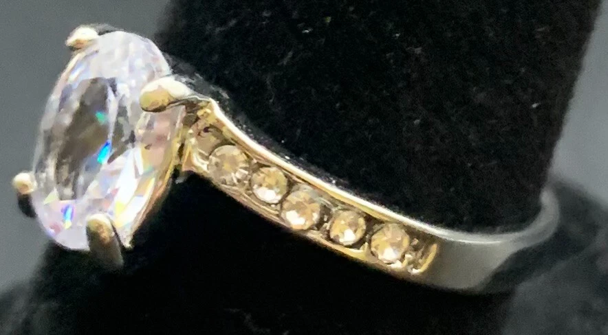 Vintage Antique Silver Tone Rhinestone CZ Wedding or Engagement Ring - Size 6