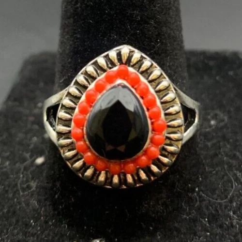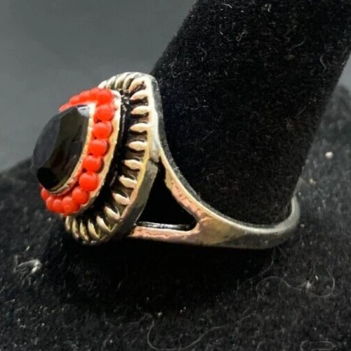 Vintage Antique Silver Tone Rhinestone Cocktail Ring - Size 8.5