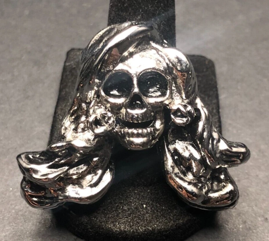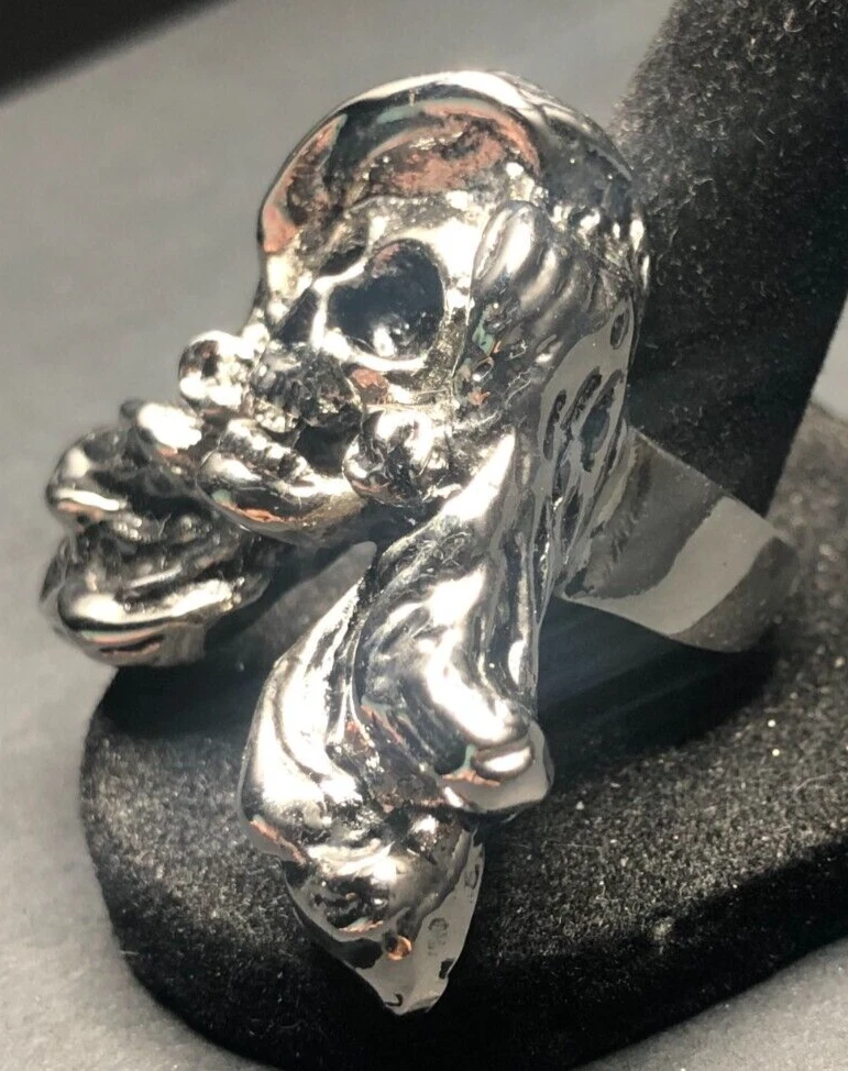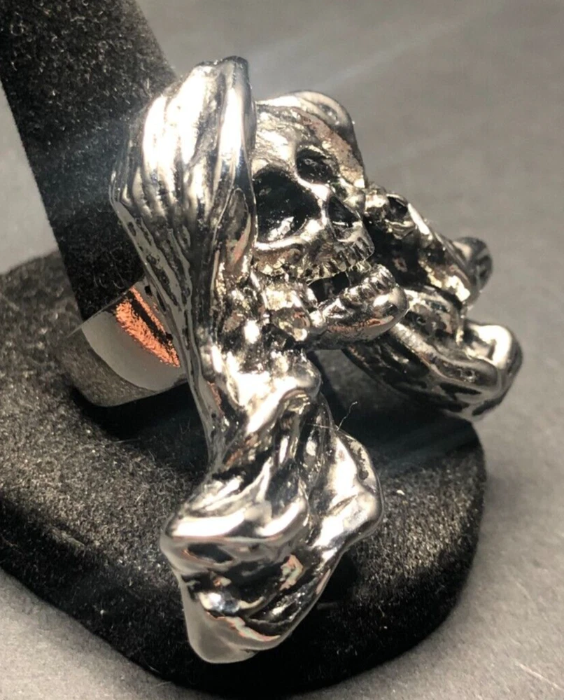 Vintage Antique Silver Tone Skeleton HEAVY HEAVY Ring - Size 8