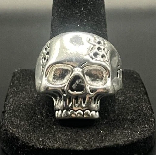 Vintage Antique Silver Tone Skull Ring - Size 10.5