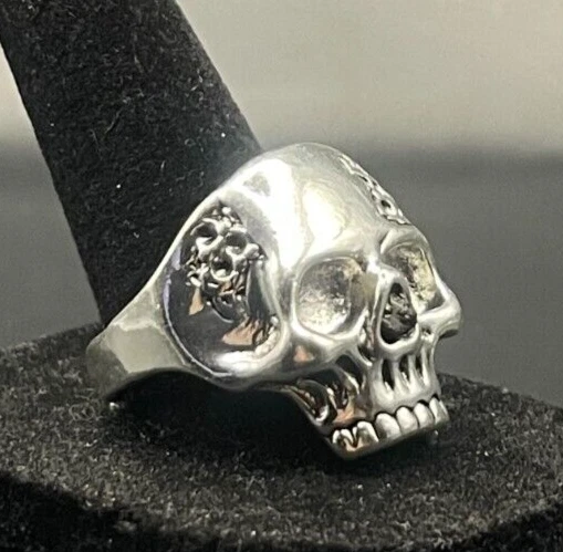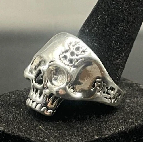 gtin13: Does not apply Country of Origin: Unknown Color: Silver Sizable: No Signed: No Main Stone Creation: Unknown Antique: Yes Brand: Unbranded Personalize: No Occasion: Anniversary, Birthday, Christmas, Father's Day, Graduation Main Stone: Unknown Main Stone Color: Unknown Main Stone Width: Unknown Main Stone Length: Unknown Setting Style: Solitaire Country/Region of Manufacture: China Secondary Stone: No Stone Band Width: Unknown UPC: Does not apply Main Stone Shape: Brilliant Cut Gemstone Clarity Grade: Unknown Base Metal: Stainless Steel Era: Undated Customized: No Style: Band, Cocktail Main Stone Depth: Unknown Ring Size: 10.5 Features: Engraved, Nickel-Free Seller Warranty: No Metal: Stainless Steel Cut Grade: Excellent Modified Item: No Metal Purity: Unknown Wholesale: No Number of Gemstones: Unknown Vintage: Yes Handmade: No Material: Unknown Theme: Biker Shape: Asymmetrical Type: Ring