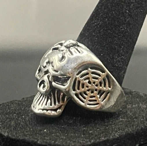 Vintage Antique Silver Tone Skull Ring - Size 10