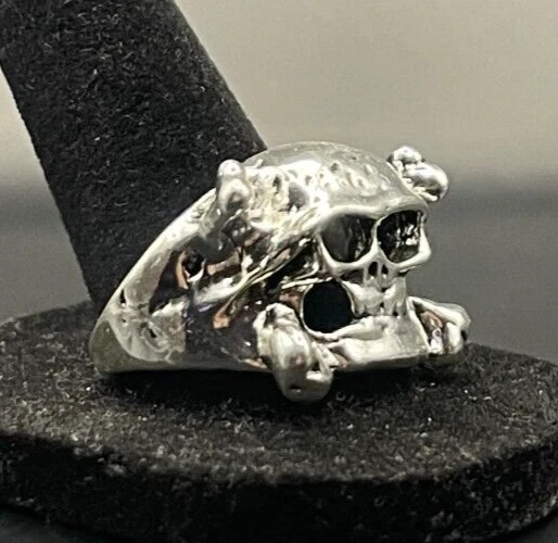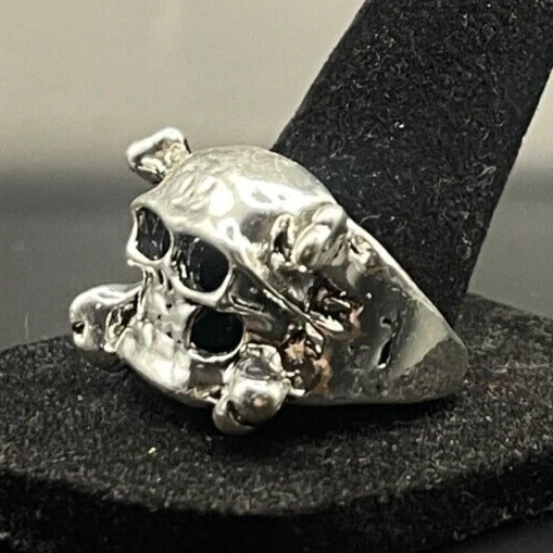 Vintage Antique Silver Tone Skull Ring - Size 10