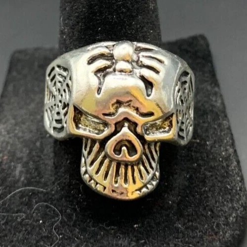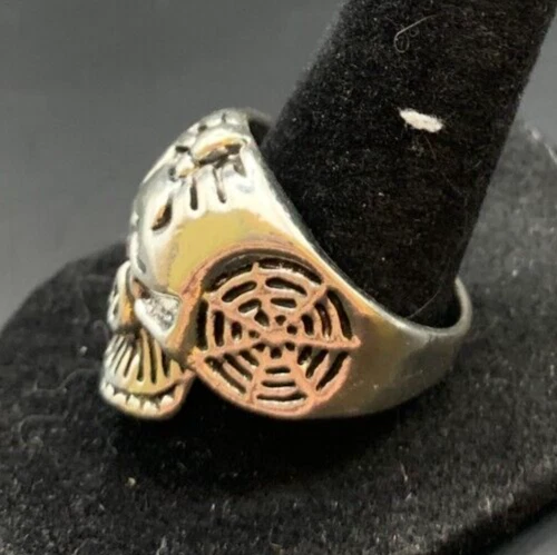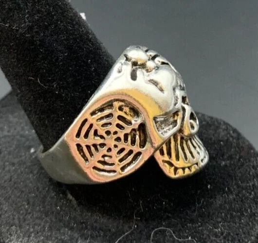 Cut Grade: Excellent Setting Style: Solitaire Theme: Biker, Skeletons & Skulls Country of Origin: Unknown Gemstone Clarity Grade: Unknown Signed: No Personalize: No Wholesale: No Base Metal: Stainless Steel Metal: Stainless Steel Color: Silver Main Stone Creation: Unknown Metal Purity: Unknown Ring Size: 10 gtin13: Does not apply Number of Gemstones: Unknown Main Stone: Unknown Features: Engraved, Nickel-Free Brand: Unbranded Main Stone Depth: Unknown Occasion: Anniversary, Birthday, Christmas, Father's Day, Graduation Country/Region of Manufacture: China Sizable: No Band Width: Unknown Main Stone Shape: Brilliant Cut Seller Warranty: No Style: Band Vintage: Yes Handmade: No Main Stone Width: Unknown Material: Unknown Main Stone Length: Unknown Customized: No Main Stone Color: No Stone Shape: Asymmetrical Type: Ring Secondary Stone: No Stone Modified Item: No Era: Undated UPC: Does not apply Antique: Yes