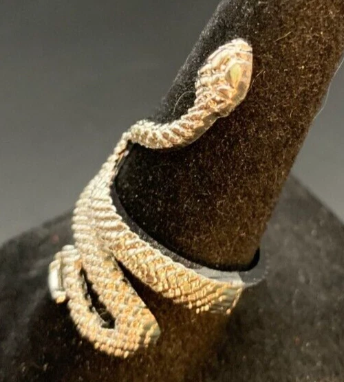 Vintage Antique Silver Tone Snake Ring - Size 7
