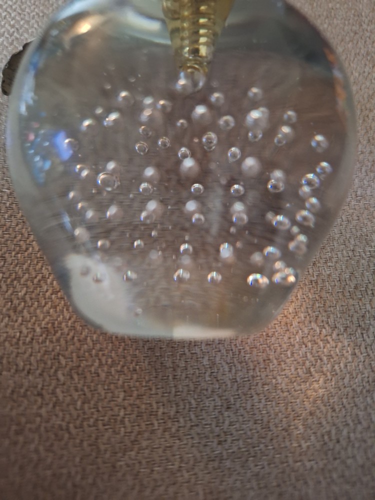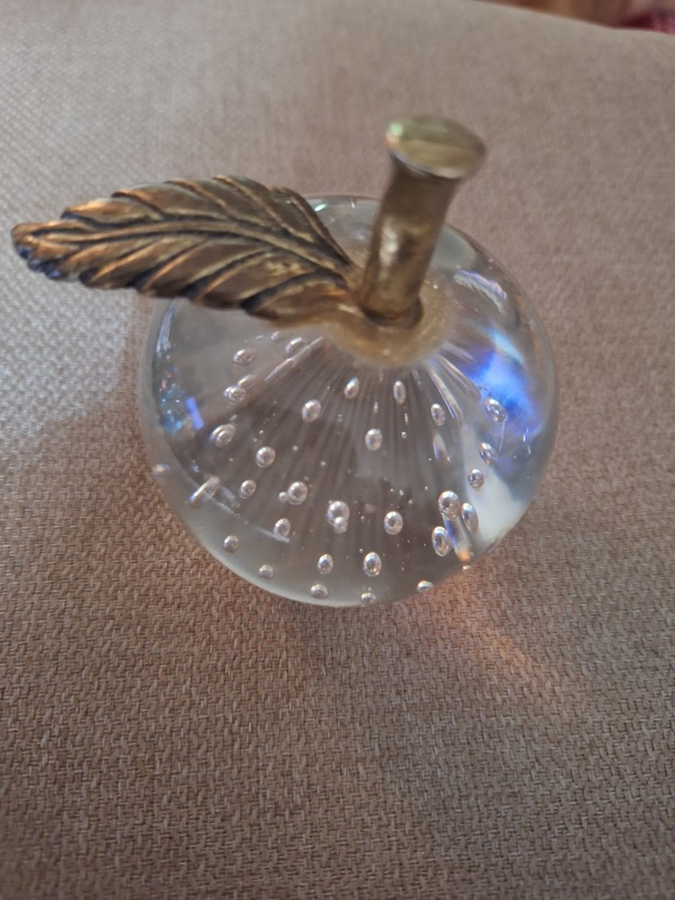 vintage new York bubble paperweight. has stem, leaf. excellent. 3 in tall. decorative art glass.