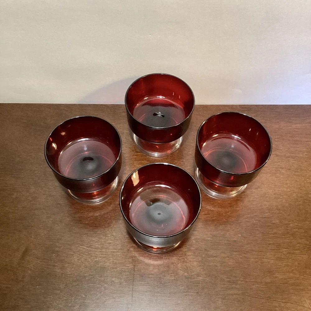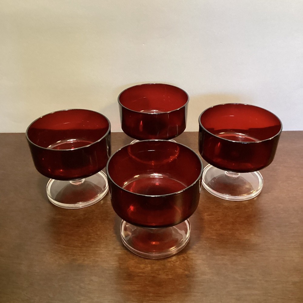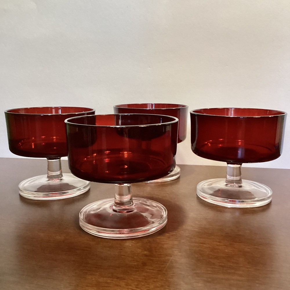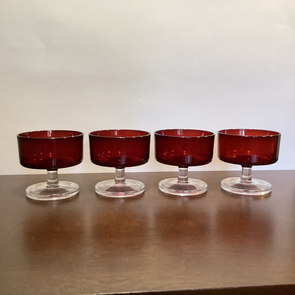 Vintage Arcoroc France 4 oz. Ruby Red Glasses Set of 4. No chips or cracks. Experienced glass shipper.