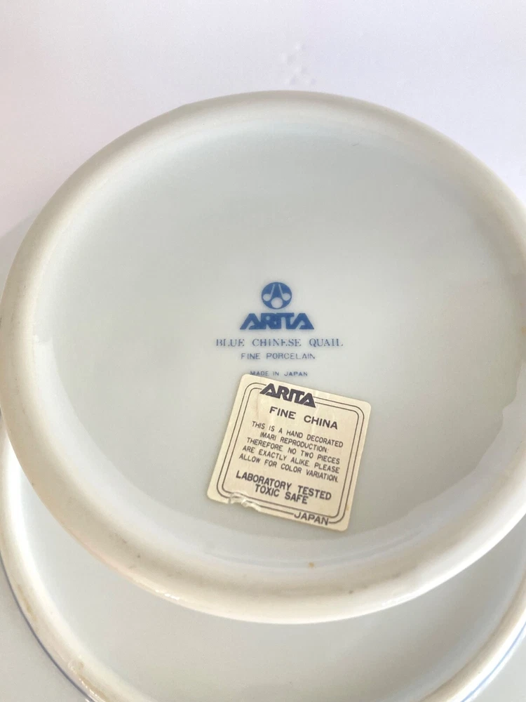 Beautiful, fine China, porcelain, pedestal, cake plate by Arita ~ Japan. Blue and white with gold accent trim. Hand painted, so each is slightly unique. Excellent condition with no chips, cracks or crazing. Some glue from production, shows underneath. Lovely addition to your blue and white collection. A wonderful centerpiece on our Vintage, embroidered, linen, Japanese Garden Tablecloth. We pass our shipping discount on to our customers.