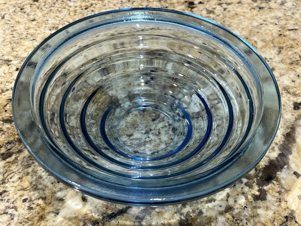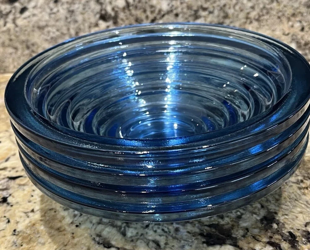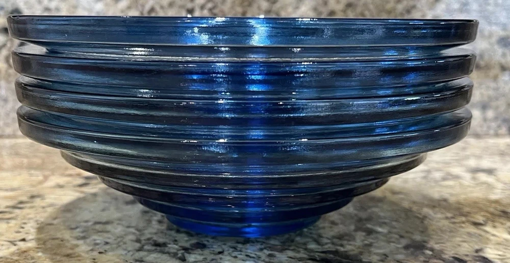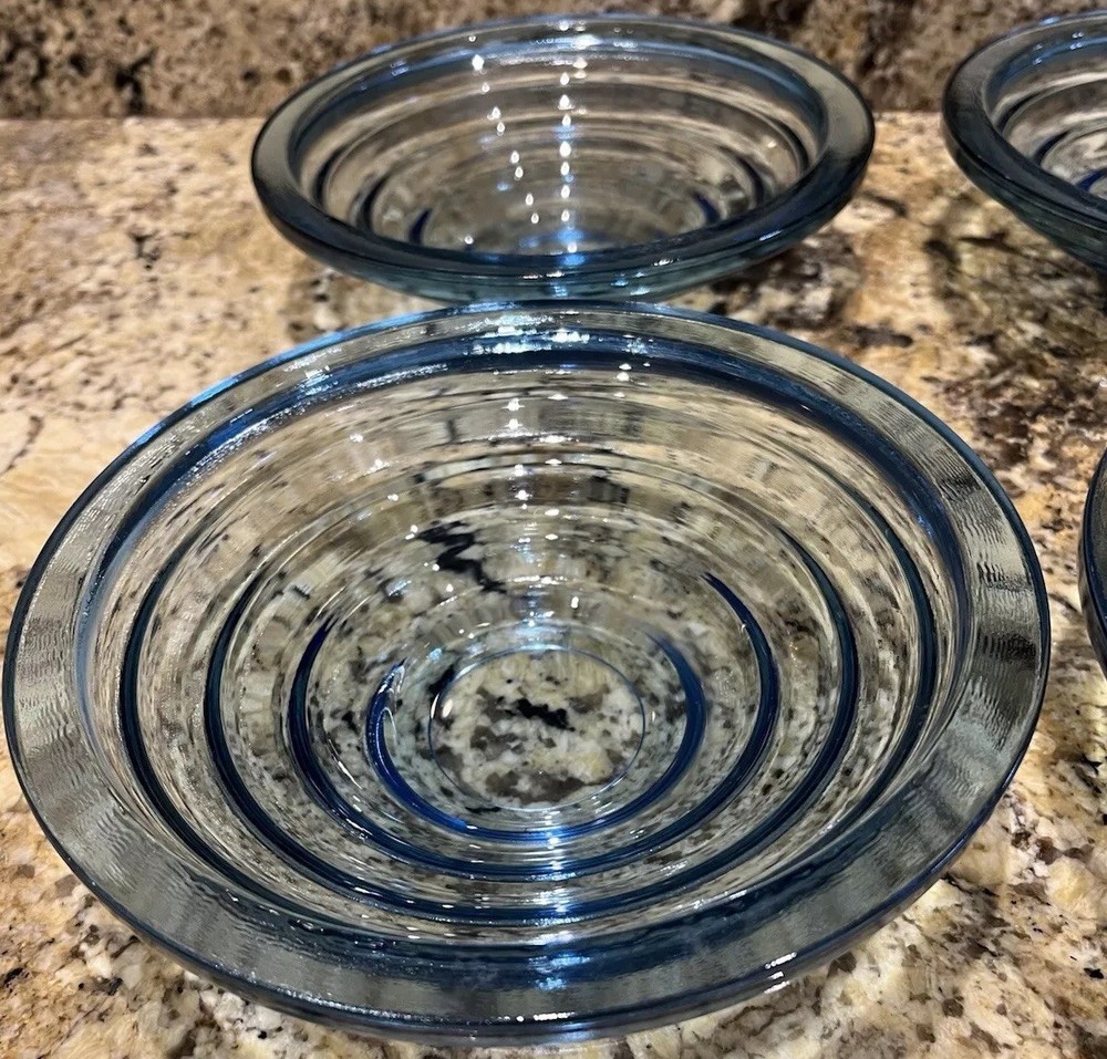 Handsome set of 4 vintage art deco bowls made of thick glass 💙☺️ Measure: 2.0626” tall 7.1876” rim diameter 2” base diameter