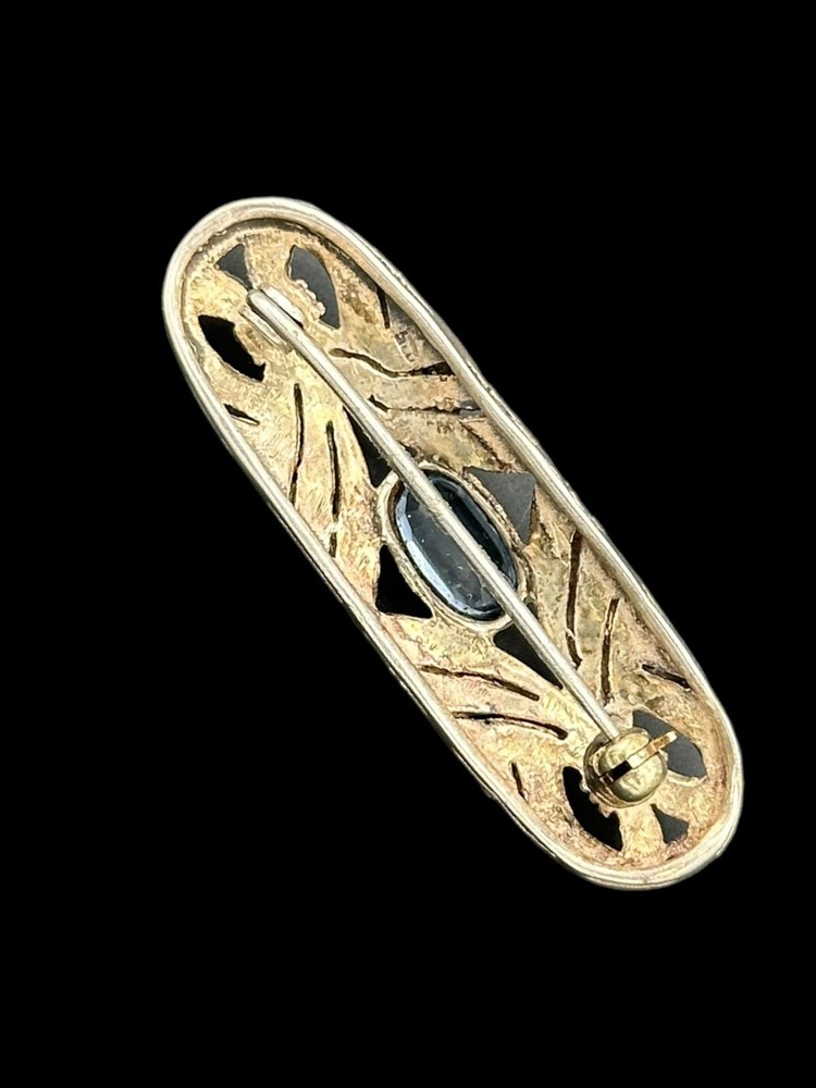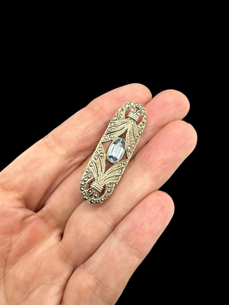 Vintage Art Deco Blue Spinel Silver Marcasite Bar Brooch Pin