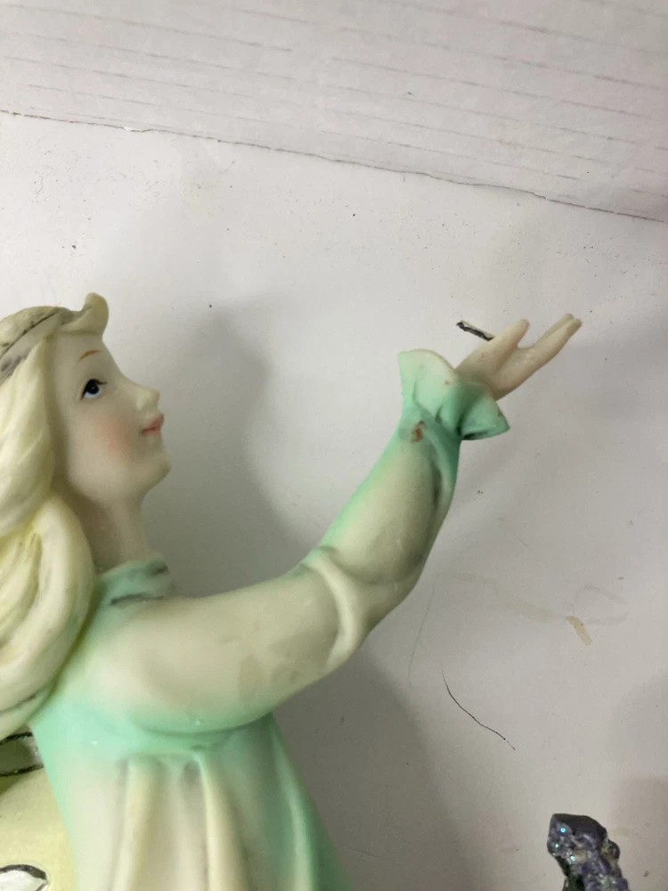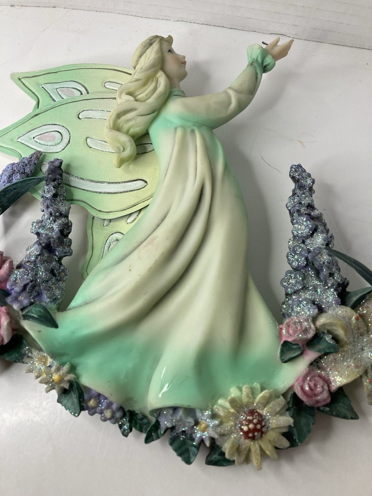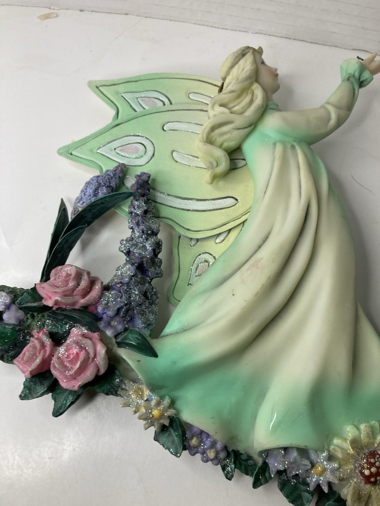 Missing butterfly in hand This Vintage FLOWER FAIRY PIXIE Wall hanging Art Deco Sculpture features a beautiful fairy figure with metal wings, adding a touch of whimsy and charm to any room. Made of metal and originating from China, this sculpture exudes an Art Deco style that is both elegant and playful. Perfect for fans of fairies and those looking to add a unique piece of art to their space, this wall hanging is a single piece that will surely be a conversation starter in any home.