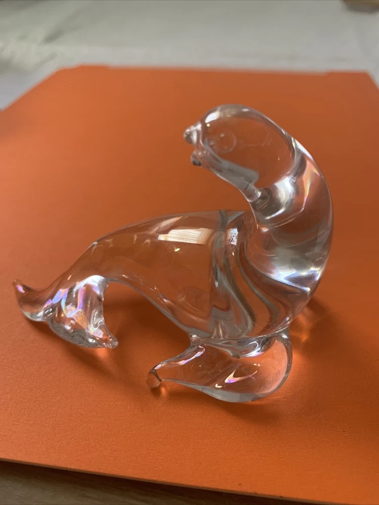 Brand:UnmarkedType of Glass:Hand Blown Glass CrystalUPC:does not applyProduction Technique:Hand Blown GlassProduction Style:Art GlassStyle:ModernOriginal/Reproduction:Vintage OriginalTheme:SealGlassmaking Technique:Hand Blowngtin13:does not applyHandmade:YesSubject/Theme:paperweightMaterial:GlassCountry/Region of Manufacture:ItalyType:PaperweightVintage:YesFigurine:SealColor:Clear