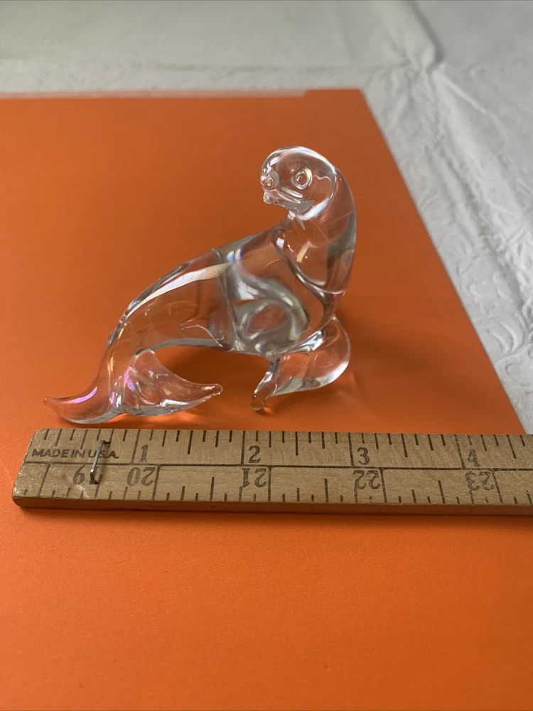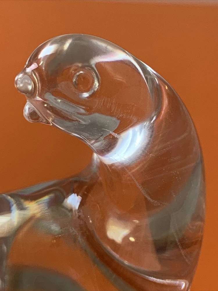 HomeVintage Art Glass Seal Sea Lion Paperweight Figurine Clear Animal Sculpture