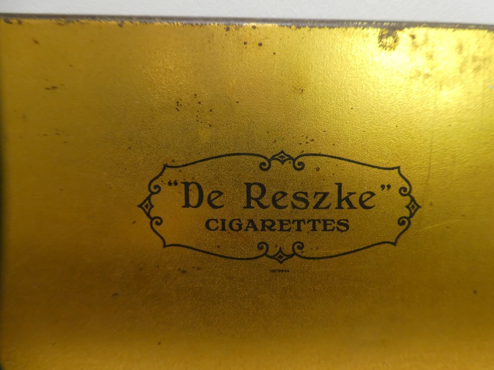 VINTAGE TOBACCO CIGARETTE TIN BOX CASE DE RESZKE ART NOUVEAU IN USED CONDITION - NICE PATINA - WEAR CONSISTENT WITH AGE AND USE 29 CM x 11.5 CM x 6 CM COLLECTORS PIECE SEE PHOTOS FOR BEST GUIDE TO CONDITION AND SIZE I AM LISTING SOME OTHER ESTATE PIECES I can combine for postage. CHECK MY OTHER LISTINGS FOR MORE