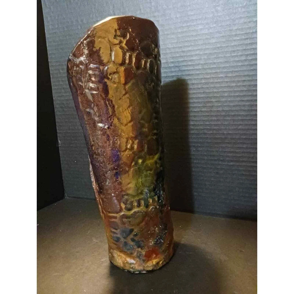 This vintage artist created a beautiful singed art pottery vase with an iridescent finish. The vase has a unique Earth tone Boho style that will add character to any room. The vase is perfect for collectors of decorative collectibles and is a great addition to any home decor.