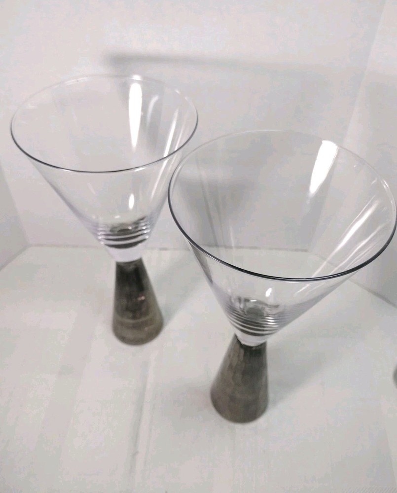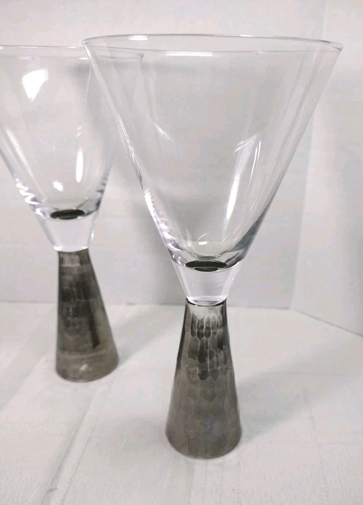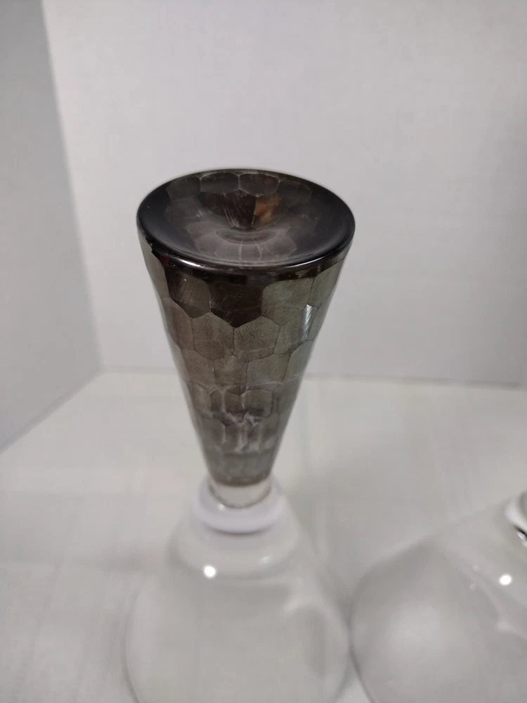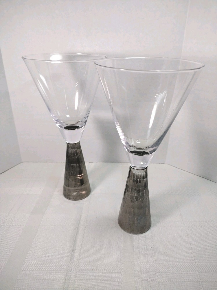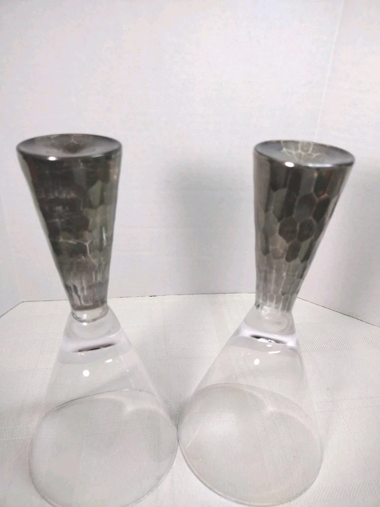 Nice artland Prescott hand blown wine or champagne glasses honeycomb stem silver on the bottom very nice and sturdy. No Chips No Cracks. Great condition