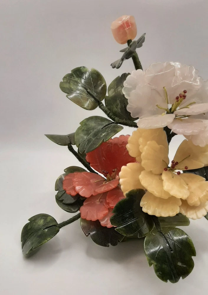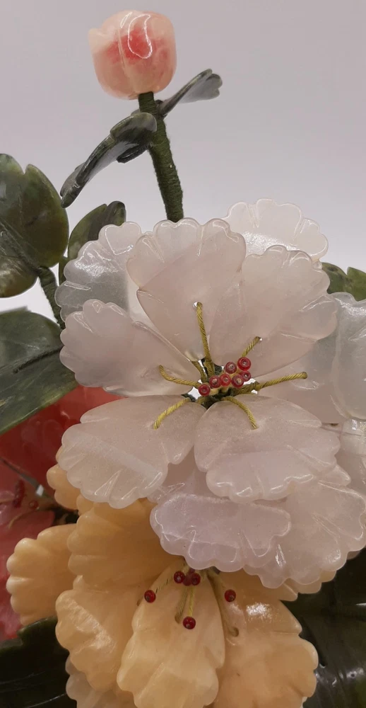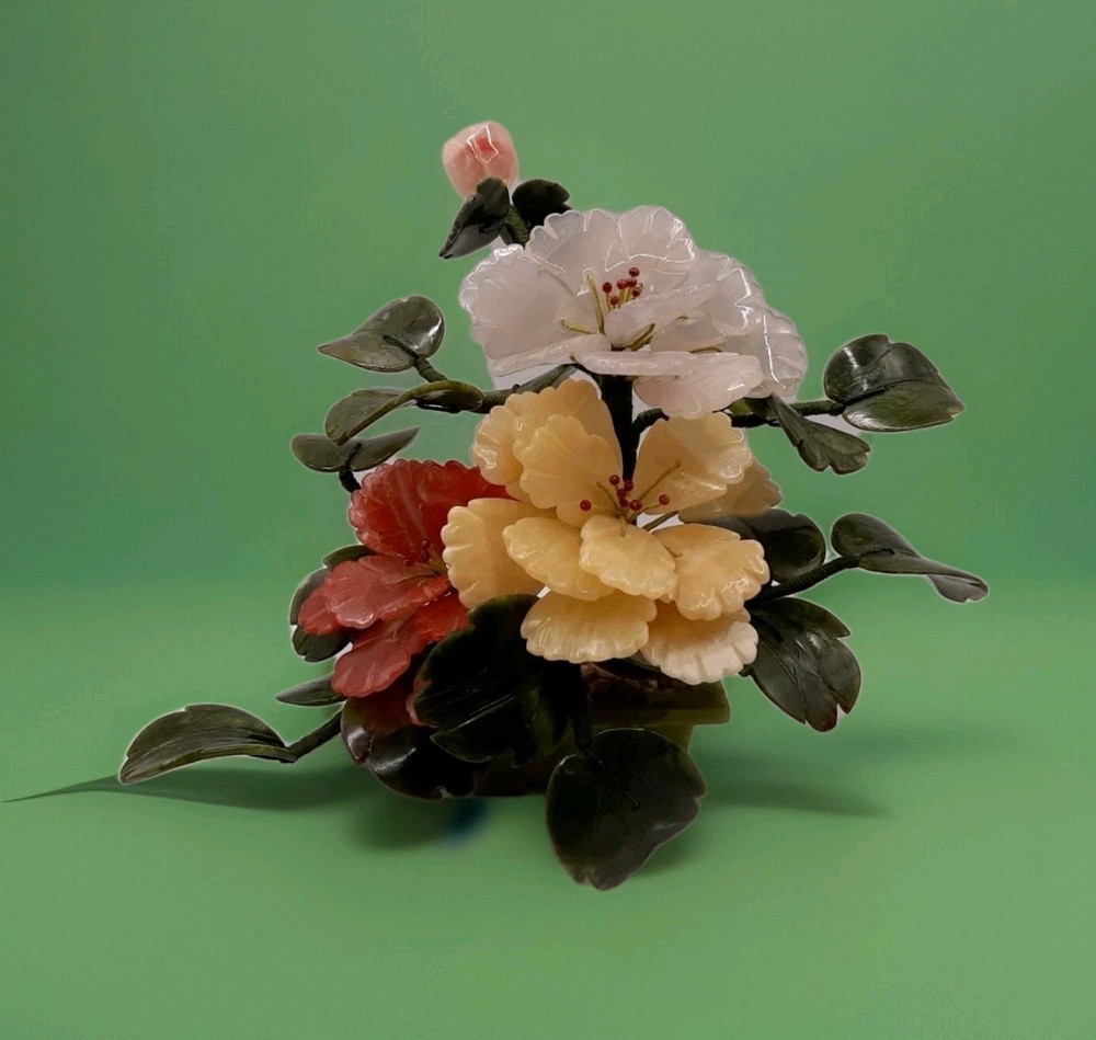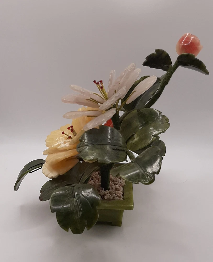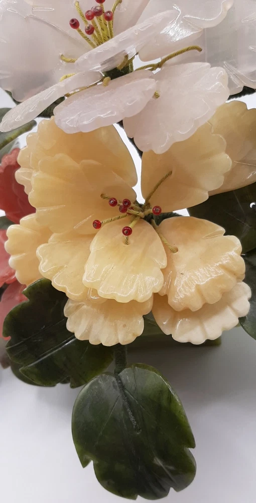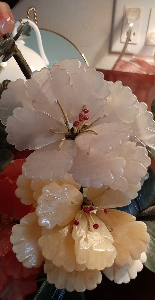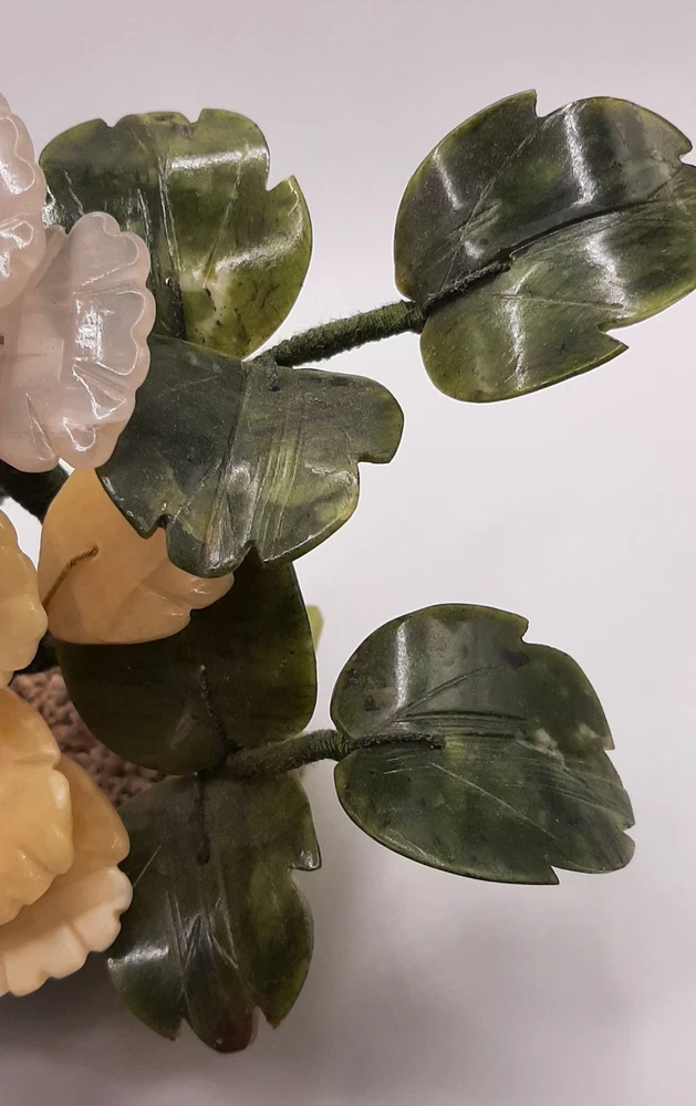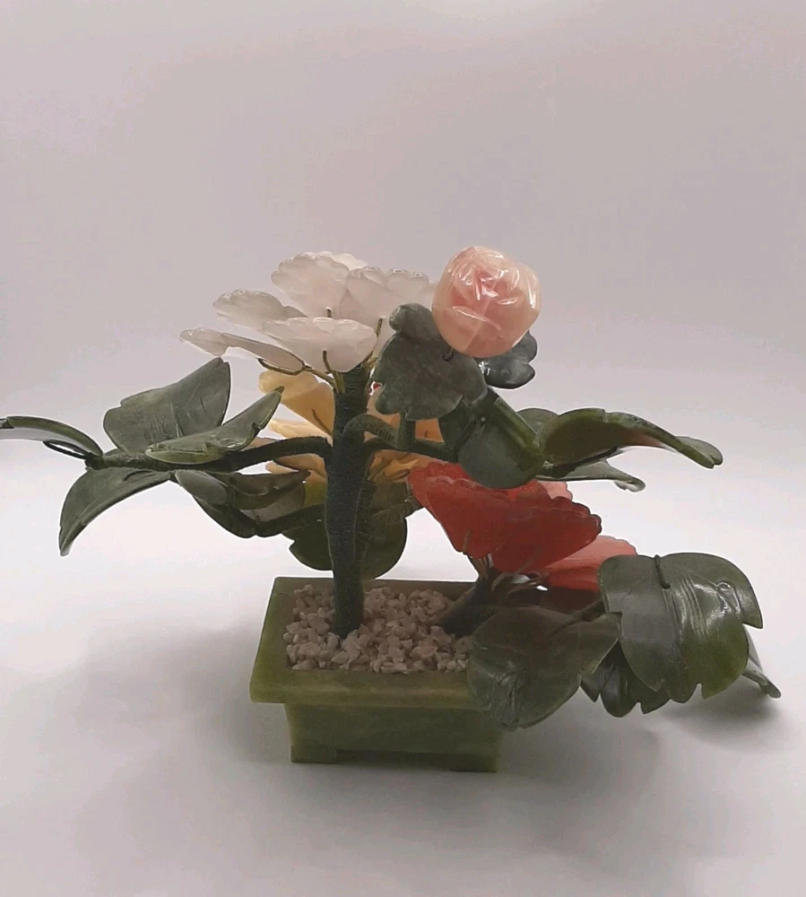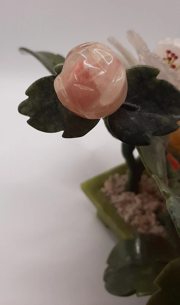 $ 12.06Vintage Jade Rose Quartz Yellow Calcite White Stone Blossom Bonsai Tree