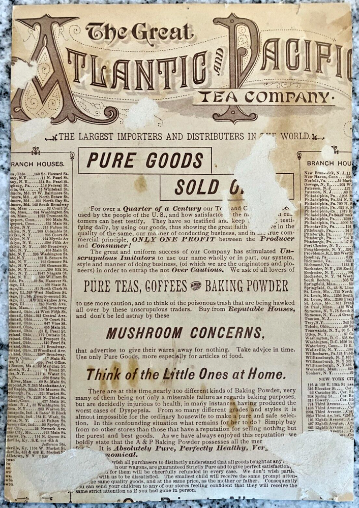 Vintage Atlantic & Pacific Tea Co ad card for tea coffee baking powder