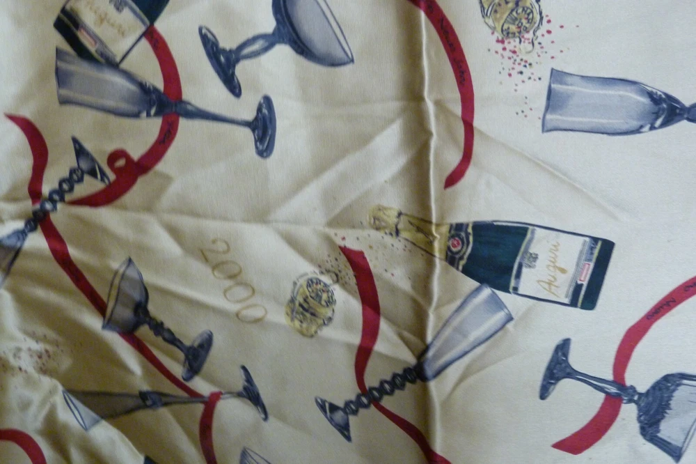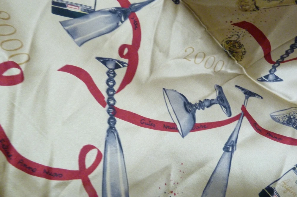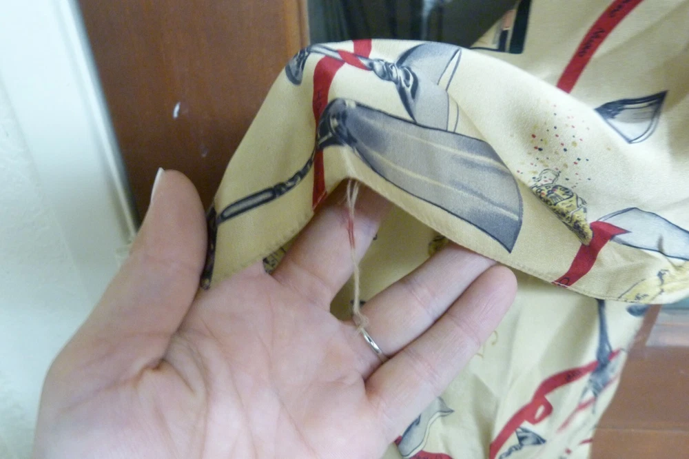 Unknown maker vintage scarf. Measures approx 14" x 62". Good condition with light wear and light couple stains due to use. Has some de threading on one edge. The maker tag has been cut off. Please see pics for more details. Thank you