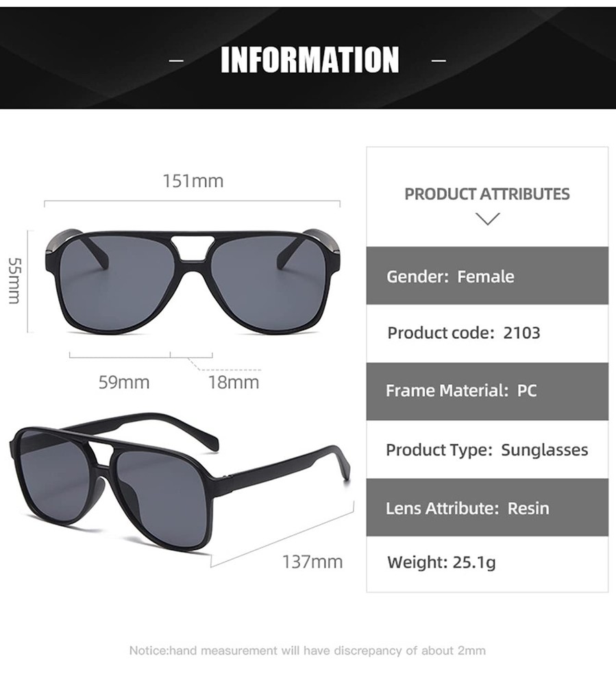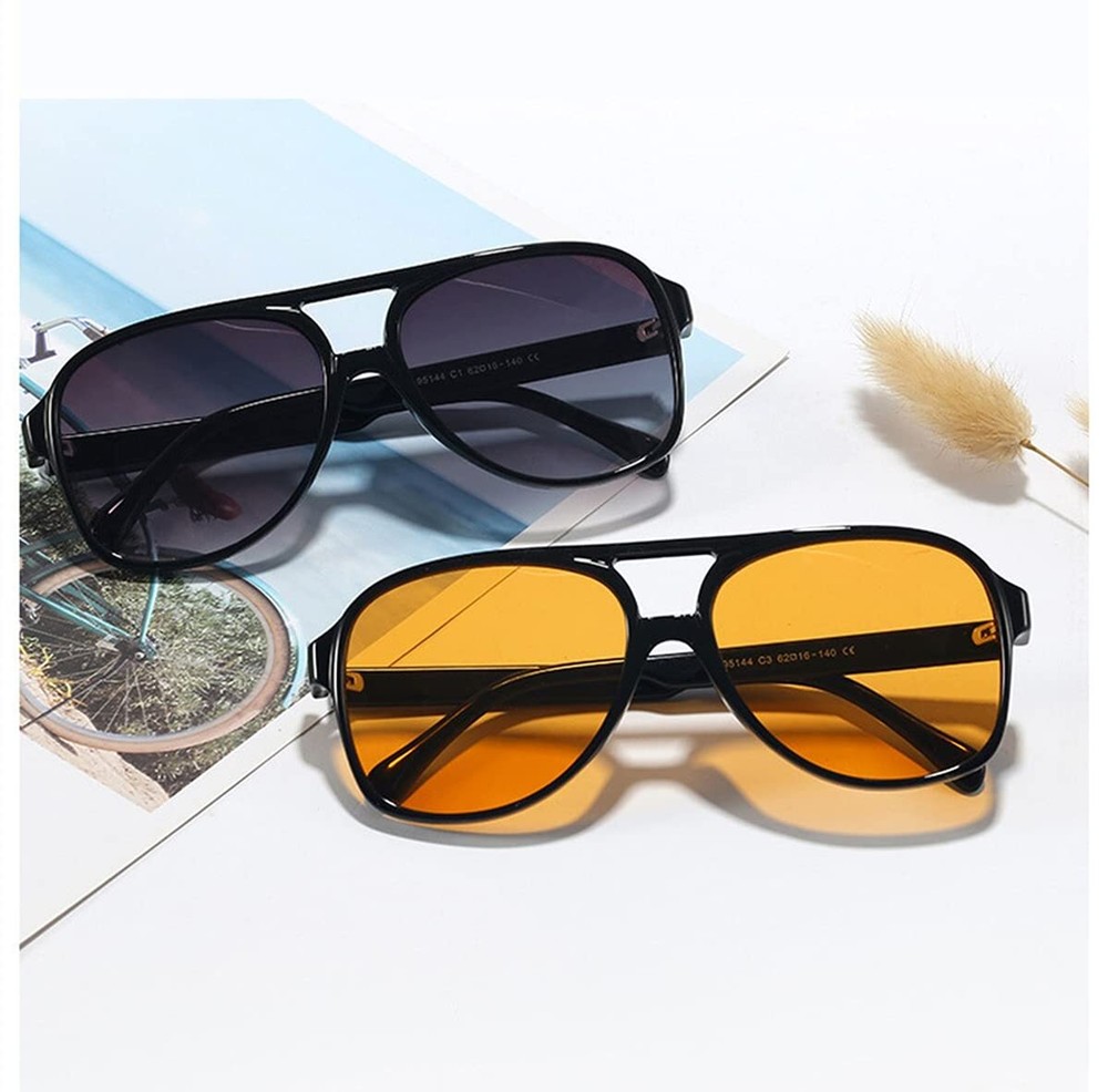 IKUVNA Vintage Aviator Sunglasses for Women Men 70s Glasses Retro Oversized Yellow Lens Shades Product Design:IKUVNA Classic Oversized Aviator Sunglasses Squared frame, Vintage Retro 70s Plastic Aviator Sunglasses,all of these are its interpretation of retro fashion. Retro Vintage 70s Yellow Aviator Sunglasses:Vintage retro aviator sunglasses for women and men,Frame design-using the classic 70s sunglasses design,Round, oval, and heart shaped faces emphasize the classic and fashion forward details of these frames making them a timeless accessory. Product Dimensions : Lens Width: 59 mm (2.4 in), Lens Height: 55 mm (2 in), Frame Width: 137 mm (5.4 in), Nose Bridge: 20 mm (0.8 in), Arm Length: 145 mm (5.7 in). UV 400 Production : 100% UV 400 protection to shield your eyes from harmful UVA, UVB and UVC rays, provide superior protection, comfort, and clarity of vision.anti reflection anti glare plastic aviator sunglasses 60 Days: We provide 60 days after you purchase it . If you have any questions about our sunglasses , please do not to hesitate and feel free to contact us.we will reply within 24 hours. Shipping We offer FREE shipping on all orders! We ship within Three business days of payment, usually sooner. We use a selection of shipping services such as UPS, FedEx, USPS etc. We only ship to the lower 48 states, no APO/FPO addresses or PO Boxes allowed. Local pickups and combined shipping options are not provided at this time. Return You can return a product for up to 30 days from the date you purchased it. Any product you return must be in the same condition you received it and in the original packaging. Please keep the receipt. Feedback Customer satisfaction is very important to us. If you have any problem with your order, please contact us and we will do our best to make you satisfied. Contact Us If you have any queries, please contact us via ebay. We usually respond within 24 hours on weekdays. Please visit our eBay store to check out other items for sale! Thank you for shopping at our store.