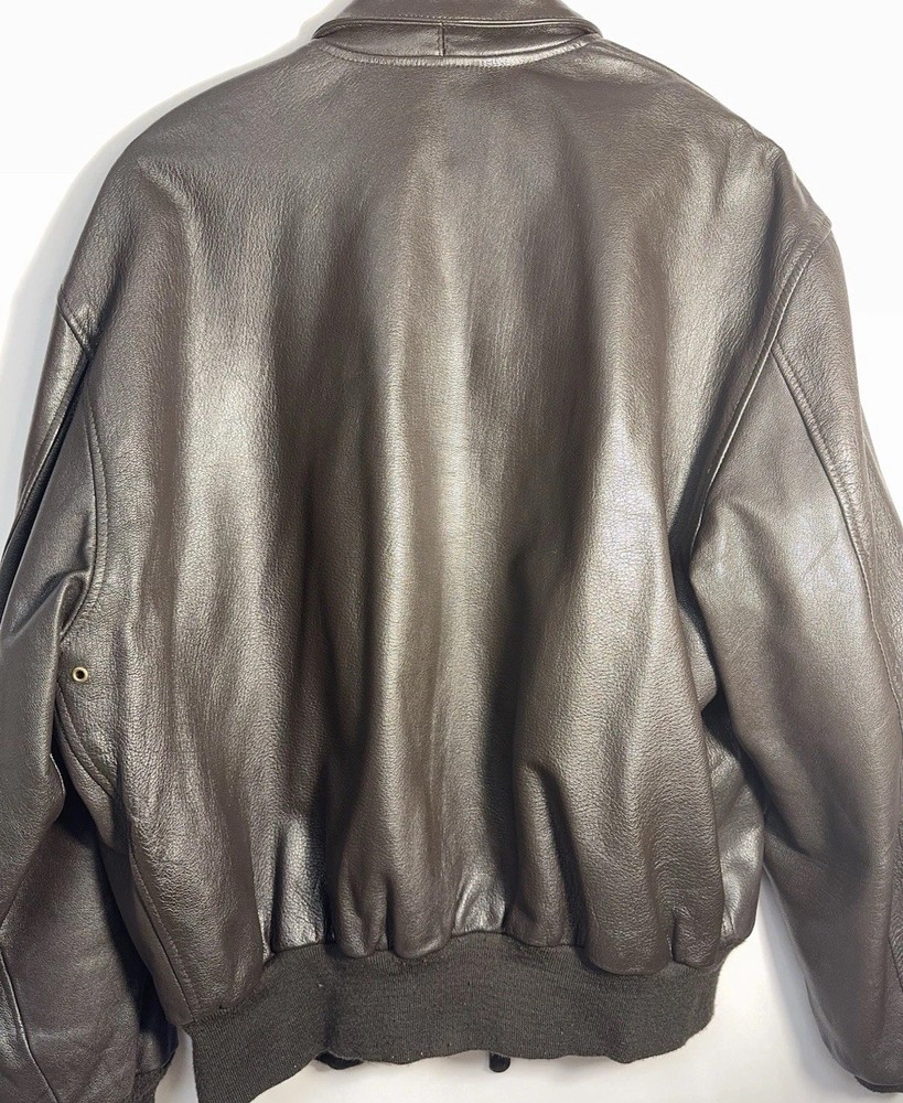Item: Vintage Avirex A-2 Style Leather Flight Jacket Size: 48L (Men’s XL) Material: Genuine Goatskin Leather Made in USA This is a vintage Avirex USA leather bomber jacket, designed in the classic A-2 flight jacket style. Avirex was well-known for producing high-quality heritage and aviation-inspired leather jackets in the 1980s–2000s, and this is one of their premium goatskin models. Features: • High-quality genuine goatskin leather (supple, thick, excellent condition) • Warm brown cotton lining • Heavy-duty brass zipper (smooth operation) • Two front flap pockets • Ribbed knit cuffs & waistband • Avirex logo tag, size tag, and goatskin label • Handwritten name inside from the previous owner (adds character) • Classic A-2 bomber styling • Made in USA Condition: Leather is in excellent condition with no cracking, stains, or dryness. Lining is clean. Zipper works perfectly. Cuffs and waistband show light normal pilling only, with no holes or thinning. Overall a beautifully preserved vintage Avirex jacket. A great piece for collectors of vintage leather, Avirex fans, or anyone who appreciates a classic bomber-style jacket. Ships fast and securely.