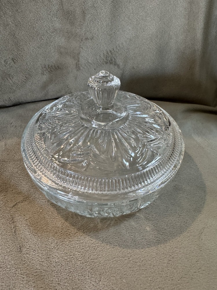 This vintage Avon clear cut glass round candy trinket dish with lid exudes a classic Grannycore vibe. Crafted in the United States with primary material glass, this American style dish is an original piece from the Avon brand. The clear color of the glass makes it versatile to fit any decor. The dish is perfect for storing candies, small trinkets, or even used as a centerpiece. The age of the dish is unknown, adding to its charm and mystery.