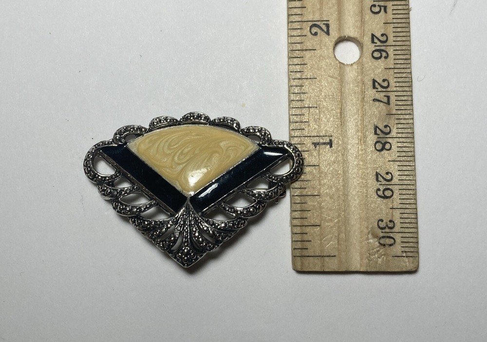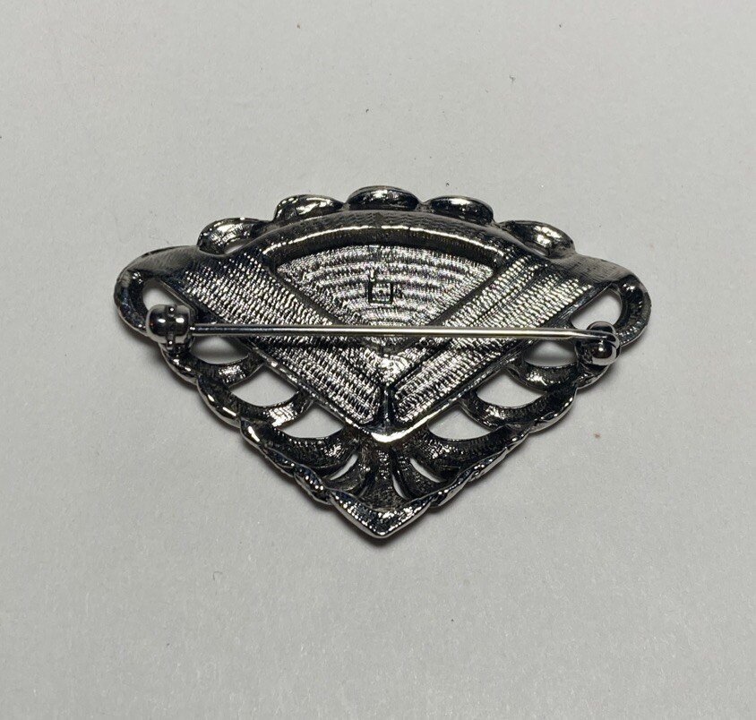Vintage Avon Black Onyx Textured Triangle Brooch in Silver Tone