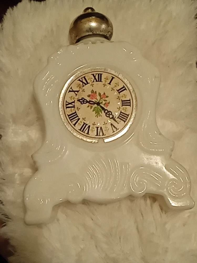 This vintage Avon mantle clock is a stunning piece that will add a touch of elegance to any room. The clock features a beautiful white color and is designed in the shape of a bottle, specifically a Cologne bottle. The clock is a great addition to any collection of decorative collectibles, particularly those interested in bottles. The Avon brand is known for its high-quality products and this clock is no exception. It was manufactured in the 1970s and has been well-maintained over the years. Don't miss out on the opportunity to own this stunning piece of vintage Avon history.