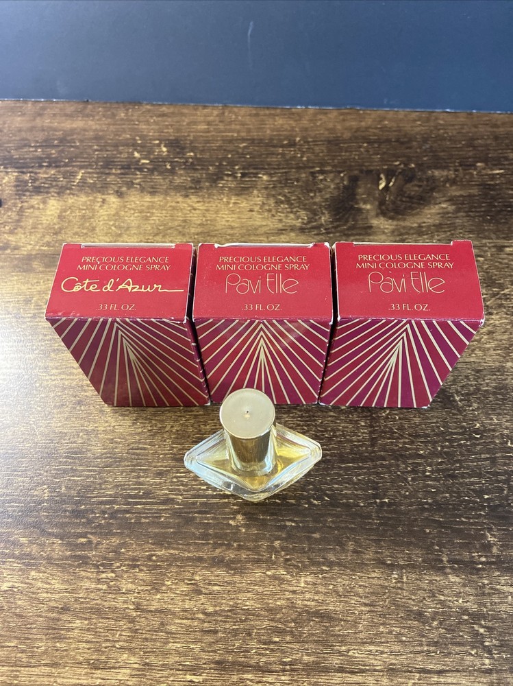 Vintage Avon Precious Elegance Mini Cologne Spray .33 FLoz Lot 3 New Pavi Elle and coted azur
