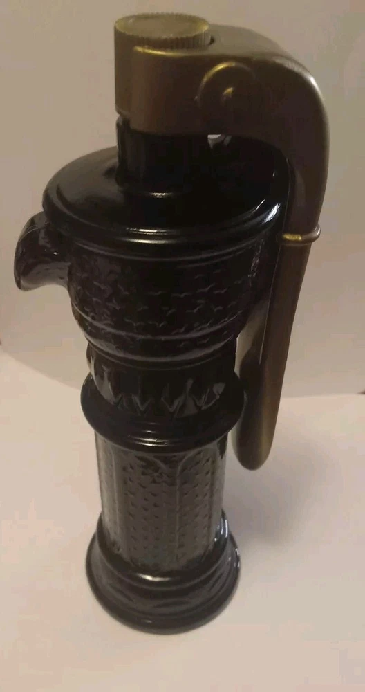Vintage Avon Water Pump 1968 Wild Country Aftershave Decanter is a medium-sized bottle made of glass and plastic. It features a brown water pump shape, suitable for decor in any room. The design is country-themed with a cowboy and western style, reflecting the mid-20th-century era. This original novelty piece is from the United States and is part of a set of six units.