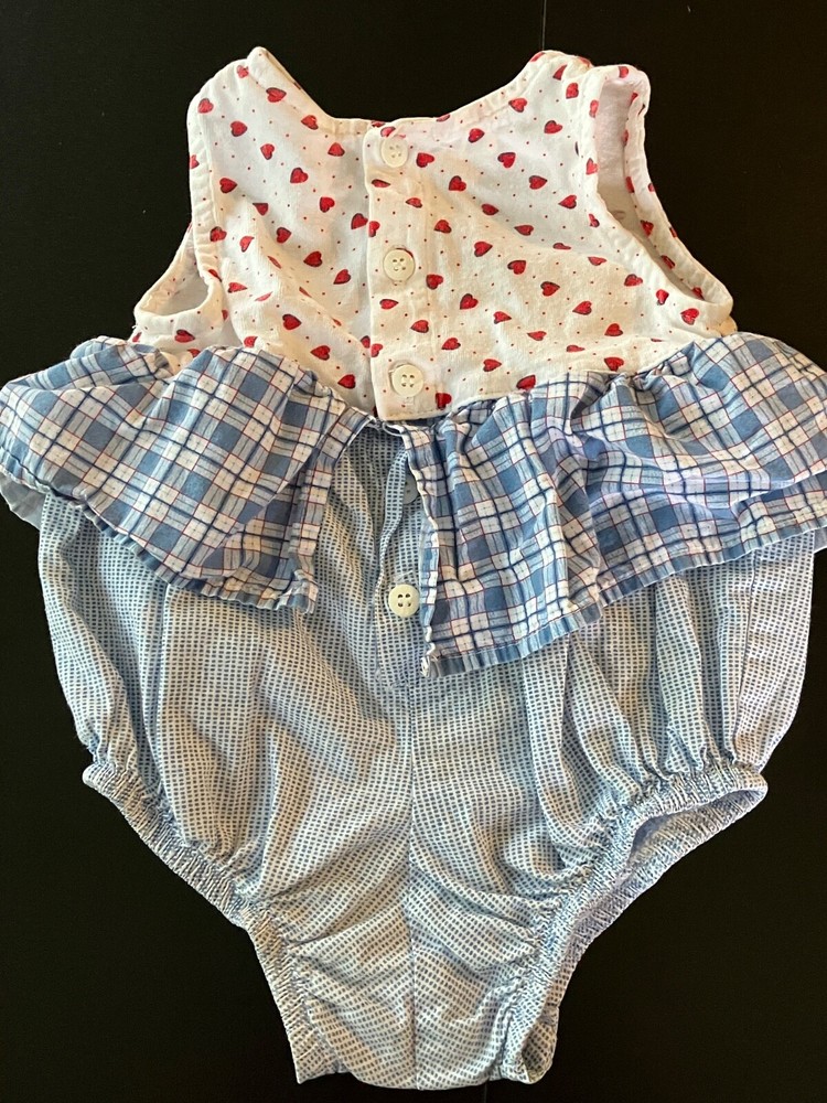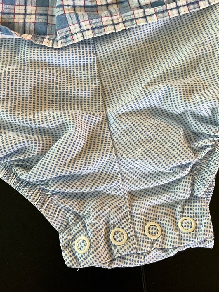 VTG TWILL Red/Green PLAID Sailor Suit NAUTICAL Shirt/Shorts ROMPER OUTFIT 3-6M