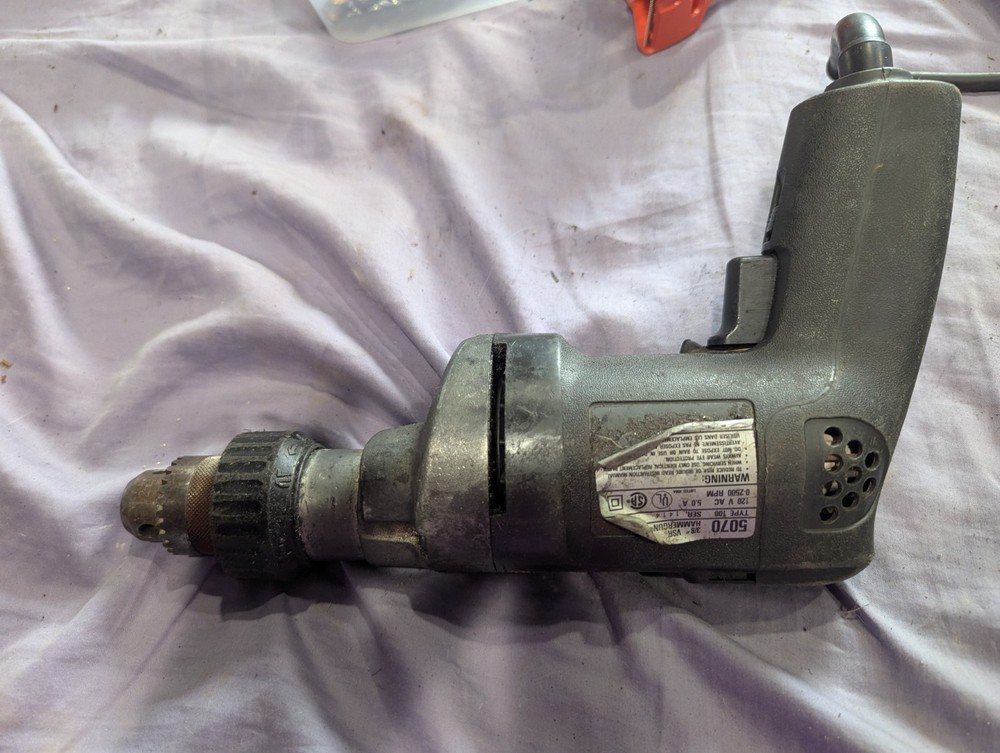 Unleash the power of precision drilling with the vintage BLACK & DECKER 5070, 3/8" Industrial Hammergun Drill. Crafted by a trusted name in tools, this drill is a testament to durability and performance. Its robust design allows for effective drilling in a variety of materials, making it an essential tool for any construction or DIY project. The drill features a 3/8" bit size, perfect for a balance of strength and accuracy. Proudly made in the USA, this BLACK & DECKER model 5070 is a classic addition to any toolkit, promising reliability and a touch of nostalgia to your tool collection.