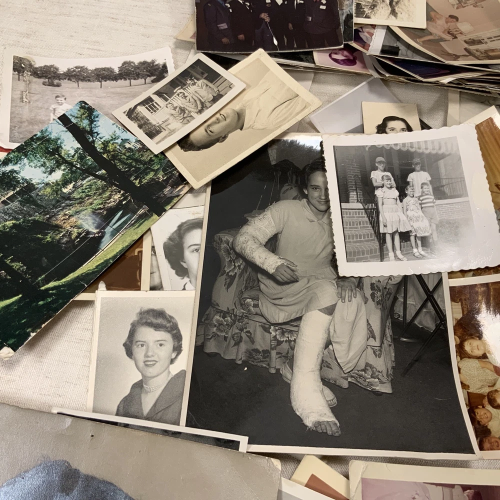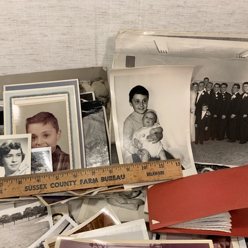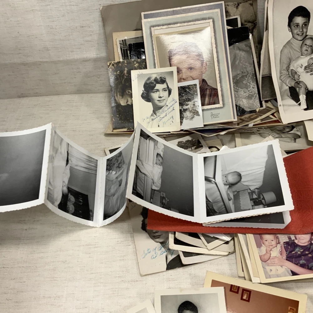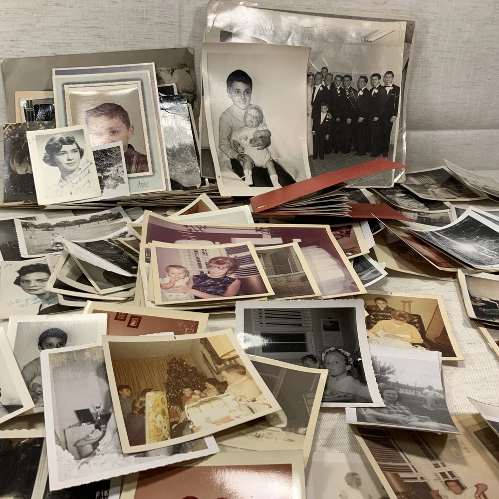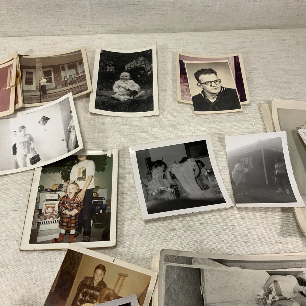 Vintage BLACK & WHITE FOUND PHOTOS Old Snapshots Antique GRAB BAG Lot RANDOM Used photos. These are old and a lot of the photos have a bow (cupped) or curve to the picture. They do noy lie flat. Some might have tears or creases. Please see the pictures. All photos in the photos are included. Some color ones are mixed in as well.