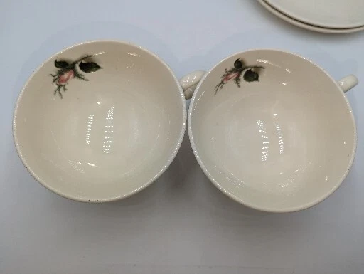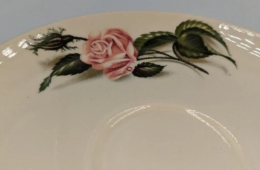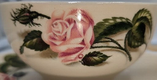 Vintage Ballerina Moss Rose Coffee Tea Cup & Saucer Set of 2 by Universal 1950's. Very nice pre-owned condition with no damage, not even a scratch. These cups and saucers are just adorable and very 1950's. The underside of the plate is stamped "Universal Oven Proof Union Made USA" with a picture of a ballerina and the word Ballerina printed over the figure. It looks like it is stamped in platinum. They look to be a 6-8 ounce cup. All of my items are carefully packed for shipping, no matter their value - $5 items are wrapped with the same care as a $200 item. My goal is to have your purchase arrive safely. I use recycled packaging when possible but mostly use new, high quality products so your item will arrive intact without damage. Large, heavy and fragile items are harder to use combined shipping with but just ask if you would like to purchase more than one item and I am more than happy to do so if feasible. If not, maybe we can work out a shipping discount. Thank you and hopefully you will visit my store again!