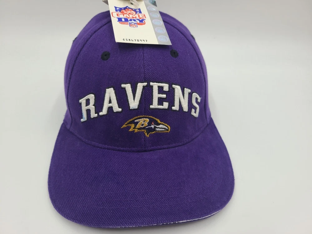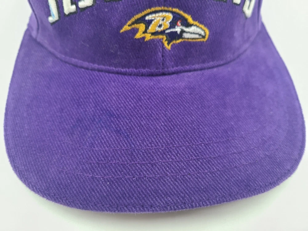 Has some stains on the brim and discoloration along the sides as seen in photos. Vintage Baltimore Ravens Drew Pearson Marketing NFL Gameday Adjustable Hat Cap. EACH ADDITIONAL HAT PURCHASED IS ONLY $1 ADDED SHIPPING!