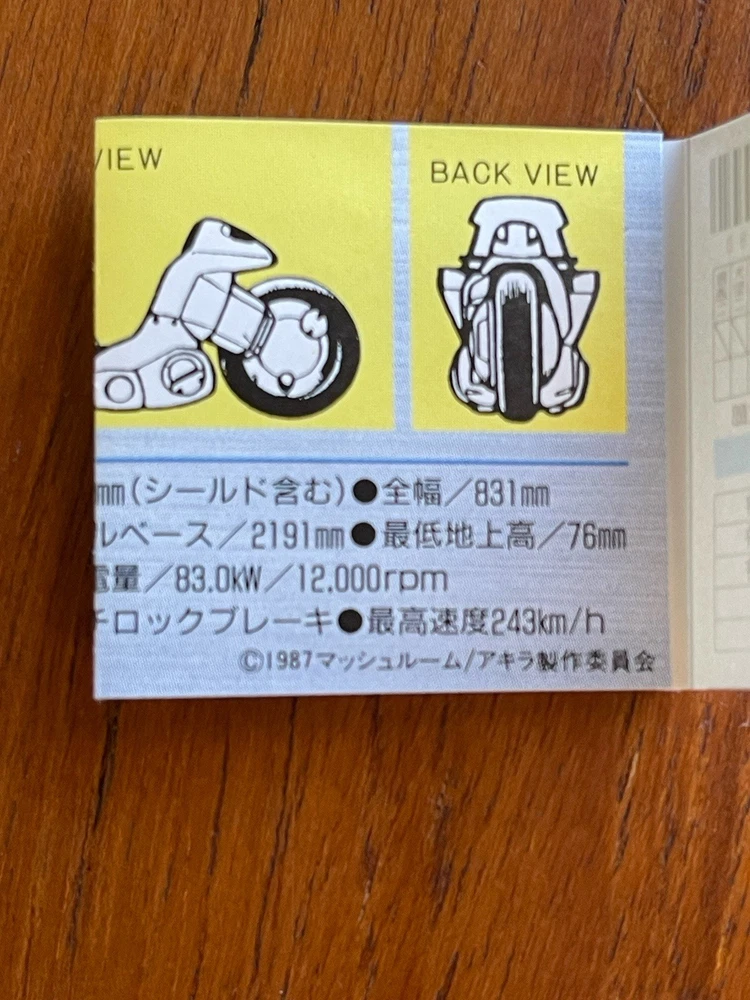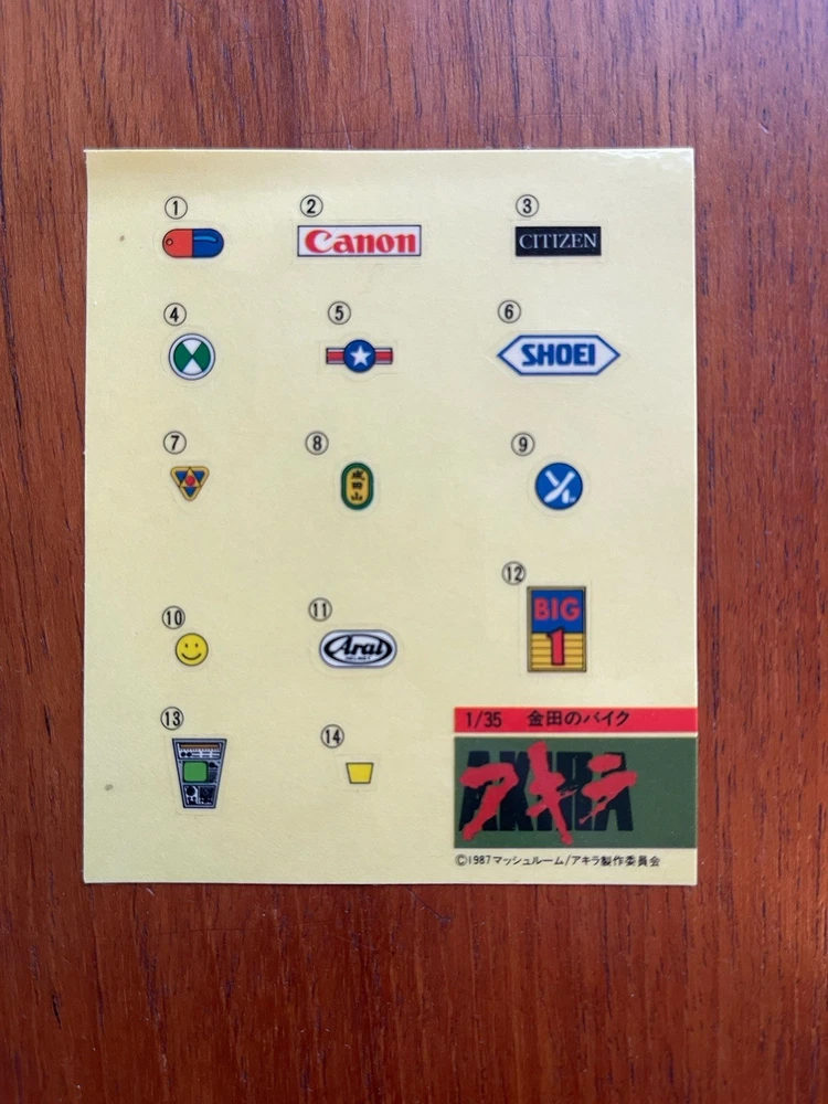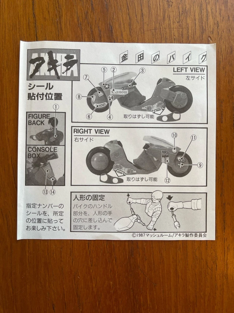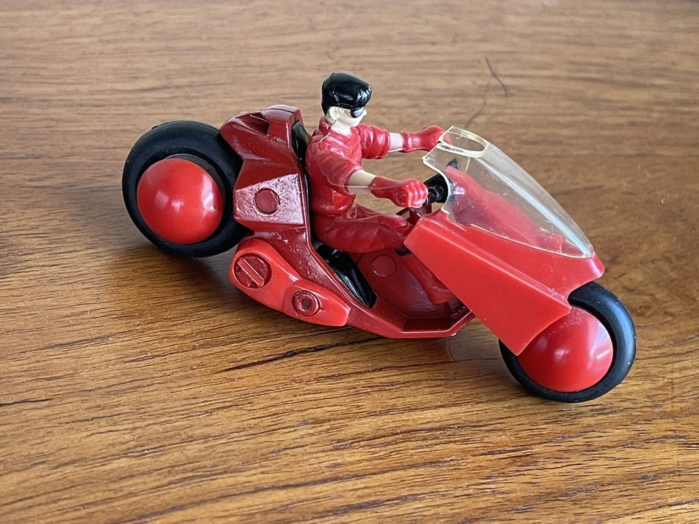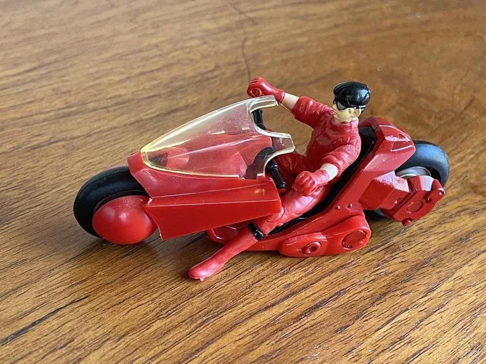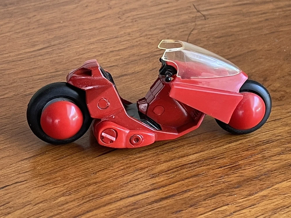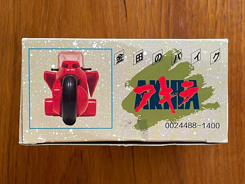 Vintage 1988 Bandai die-cast toy. AKIRA Kaneda's Motorcycle 1-35 Scale Toy in Excellent condition from Japan In original Box with original foam inserts which are also in Very Excellent Condition. All original packaging & inserts are included. *Stickers unused and in excellent condition. Which is quite rare to see! Insanely good original Bandai boxed toy for Katsuhiro Otomo's anime cult classic 'Akira' (1988), featuring biker gang leader Shōtarō Kaneda with his beloved & Iconic custom red motorcycle. Made in Japan by Bandai. Comes complete in the original box, original protective foam inserts with tri-fold info card, instructions and unused sticker sheet (pictured). The box alone is a thing of beauty and all pieces are in excellent condition for their age. Essential shelf material for any Akira Fan. I am the original owner of this toy. It was barely used and was stored very well in non- smoking environment. *There is a light spot of what looks like wear from being in foam inside box. Please see all photos to confirm quality & condition. I welcome any questions. Thanks for looking!