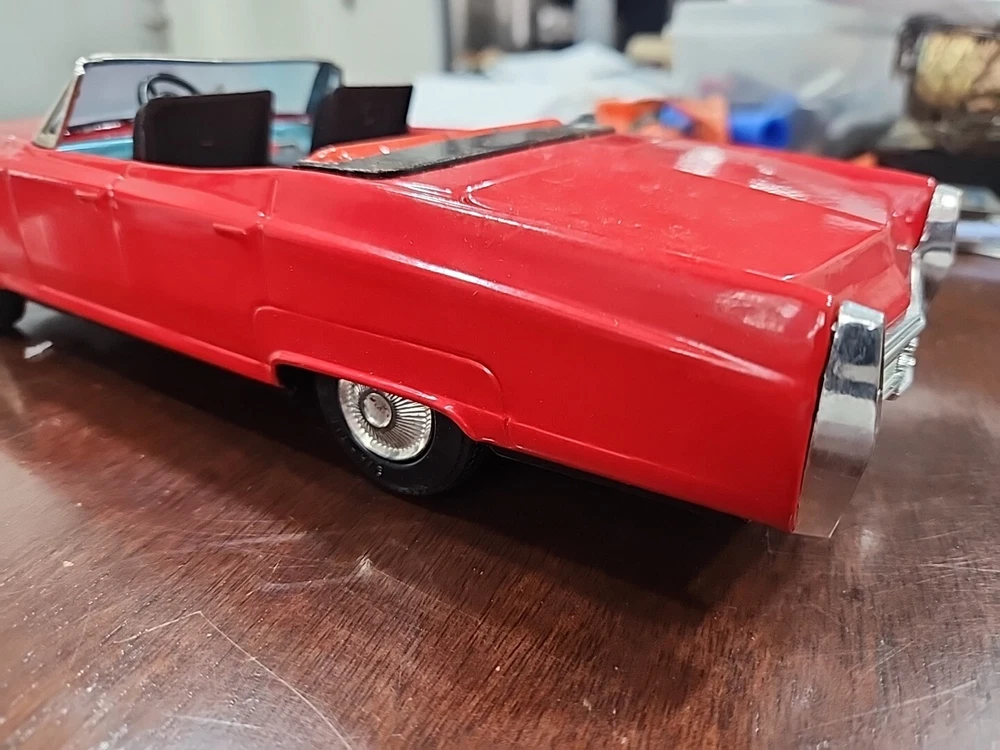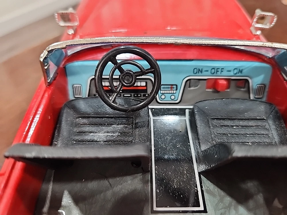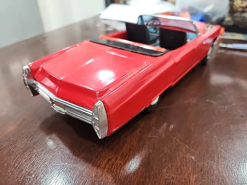 UNTESTED This vintage Bandai tin litho toy is a must-have for collectors of classic toys and vintage cars. Made in Japan, this battery-operated Cadillac is part of the Cadillac character family and is made of tin material. The toy is in great shape and has been well-maintained over the years. The Bandai tin litho Cadillac is perfect for collectors who want to add a unique piece to their collection. The toy is untested and comes from a smoke-free home. This vintage piece is sure to be a great addition to any collection and will bring joy to anyone who sees it.