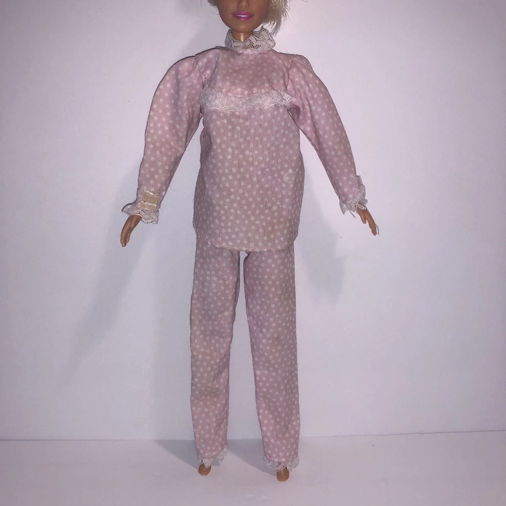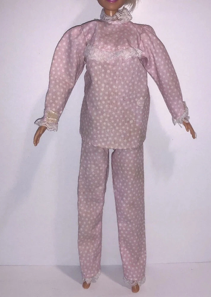 ******PLEASE READ AND SEE PHOTOS****** This is a very cute Pink Polka-Dot pajama set. This is in very good condition. I can't see any damage or stains. It has a little piece of Velcro on each of the wrists like it might have held a stuffy or something. I'm not 100% positive that this is Mattel or Vintage, I couldn't find anything matching it in a google image search. A couple things came close, I'm pretty sure this is meant for Barbie, it fits her well and its made well, but again I could be wrong. I am not an expert , by any means, my definition of GREAT or GOOD condition could vary from someone else . All the Detail I have is from my experience of being a mom , or what I could find doing a QUICK google search . But I WILL do my best. I am always open to learning so if there is Something big that I have missed Please let me know . I DO COMBINED SHIPPING and I try to hit the post office every Monday, Wednesday, and Friday . Item(s) will be shipped the day after payment is made.! I live in a VERY RURAL area , on the base of a mountain, 35-40 minutes away from the city and the Post Office. I do my best to get the SHIPPING COST as low as possible but it might be a little higher then someone that lives in a city, SORRY :( I SHIP with USPS Ground in most cases, unless otherwise marked. Thank you for looking and if you read all of this and made it this far, I hope you have a great day!! :) HAPPY BIDDING Could be vintage or Barbie not 100 fits Barbie maybe fashion doll