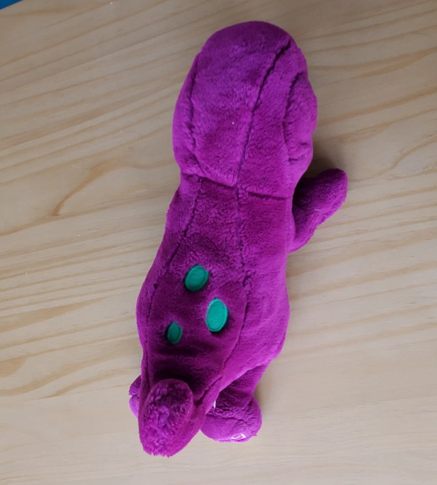 Used condition Barney stuffed animal. Smoke free home, No rips or tears, minor scratches on eyes (see pic).