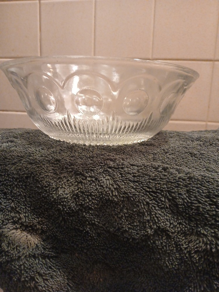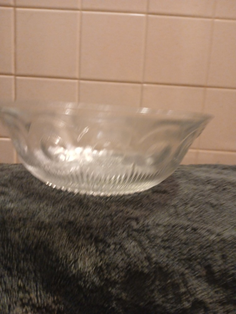 Add a touch of vintage charm to your dining table with this beautiful serving bowl. Crafted from clear glass, this bowl features a ribbed diamond pattern and a diameter of 8.5 inches. The bowl is perfect for serving your favorite meals and is sure to impress your guests. This vintage serving bowl is a unique addition to your collection and is perfect for those who appreciate the beauty of antique glassware. The bowl is unmarked, making it difficult to identify the brand, but it is sure to be a conversation starter. So, add this stunning piece to your table setting today and enjoy the timeless elegance it brings.