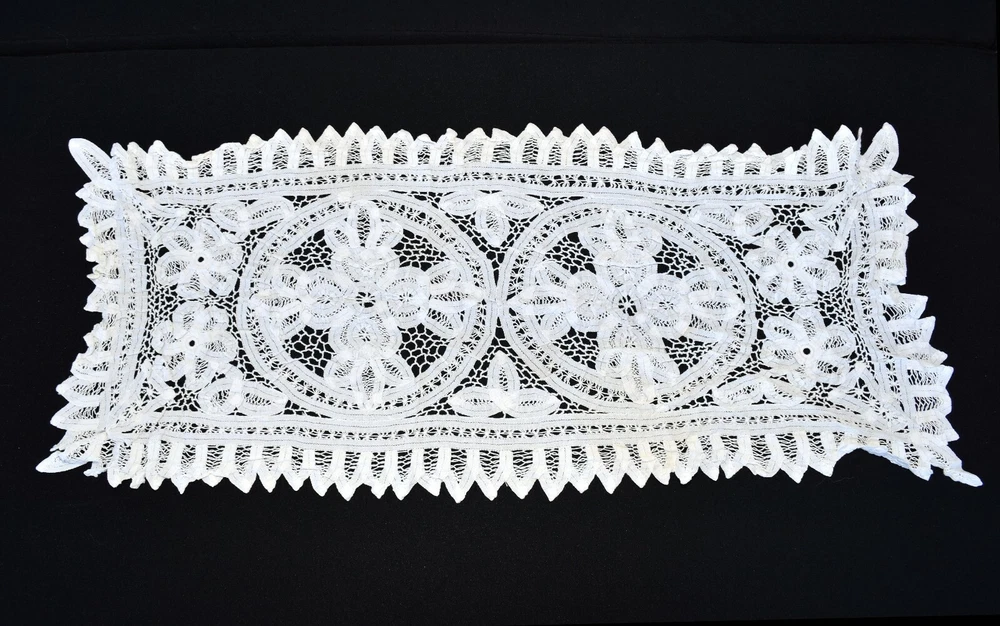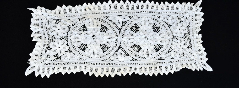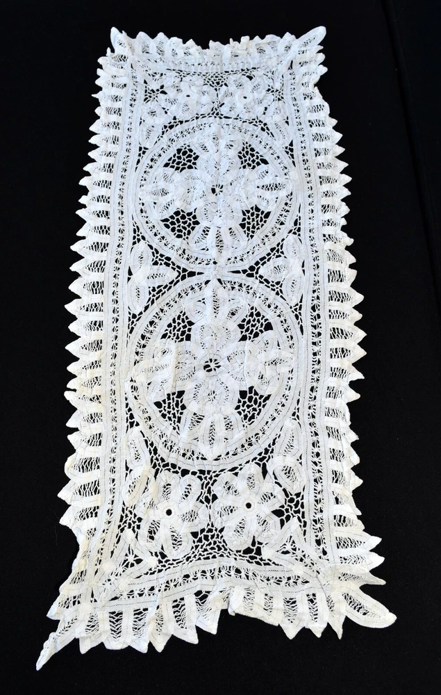 Vintage Battenberg Tape Lace Cream with Large Flowers Table Runner 12 x 30