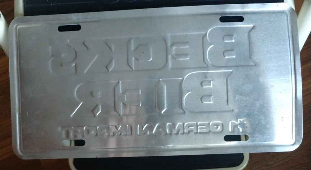 This vintage Beck's Beer License Plate is a must-have for any collector of automobilia. With its bold design and unique slogan, "#1 German Import", this license plate is sure to make a statement in your collection. The plate is perfect for displaying in a home bar or man cave, and its unknown country/region of manufacture only adds to its mysterious allure. The plate is in a used but well-maintained condition and has not been personalized in any way. Whether you are a fan of Beck's beer or simply appreciate vintage collectibles, this license plate is a fantastic addition to any collection. Don't miss out on the opportunity to own a piece of automotive history! See scans to help determine the condition.