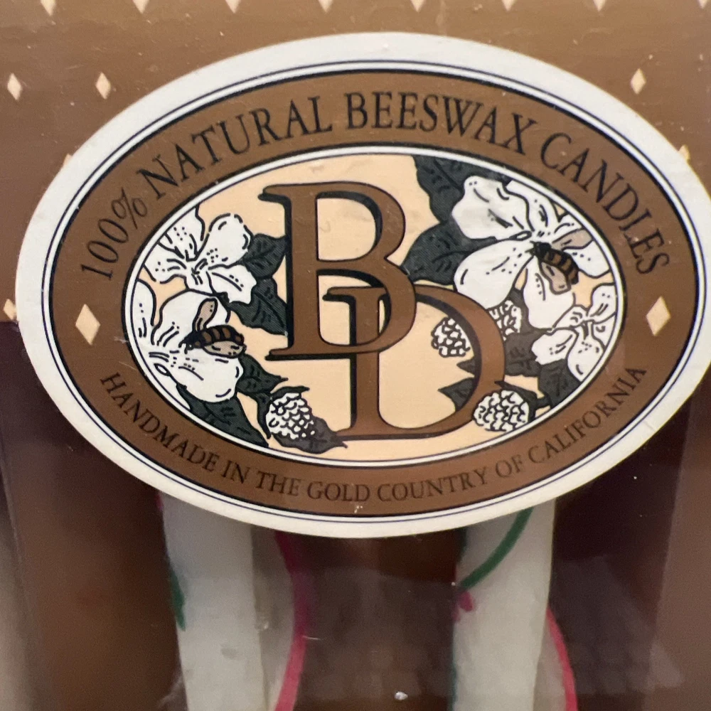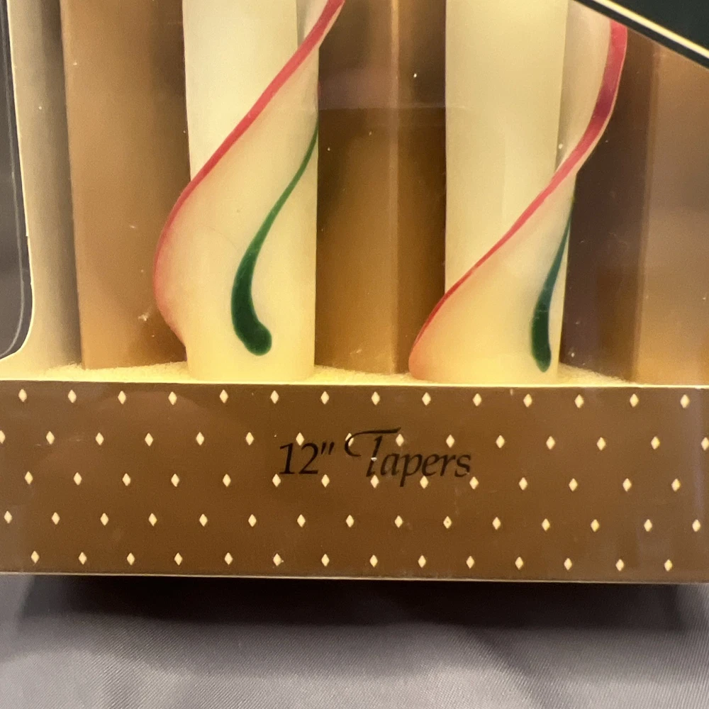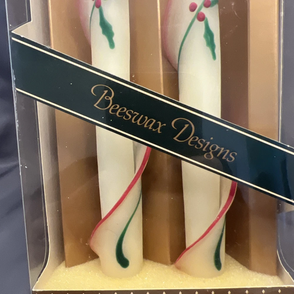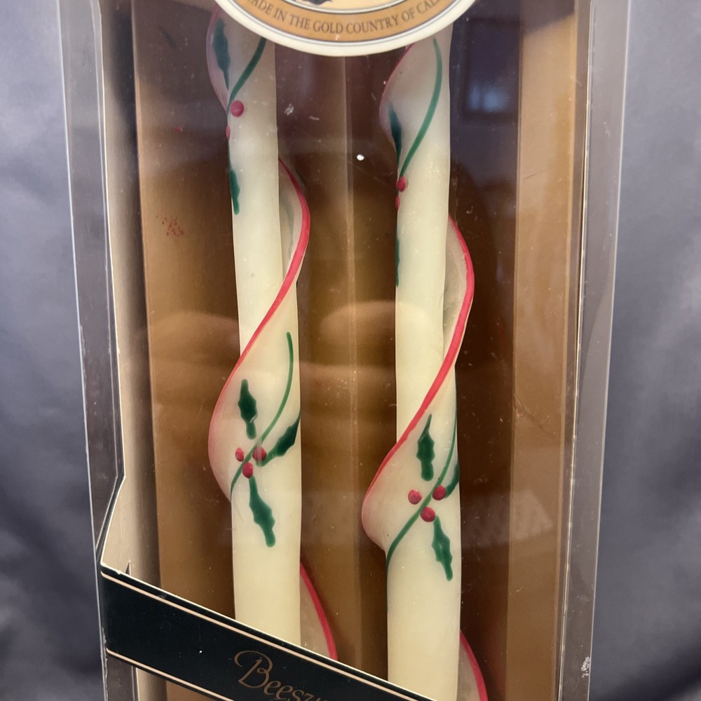 Vintage Beeswax Spiral Taper Candles 12 Inch Christmas Holly Red Green Handmade