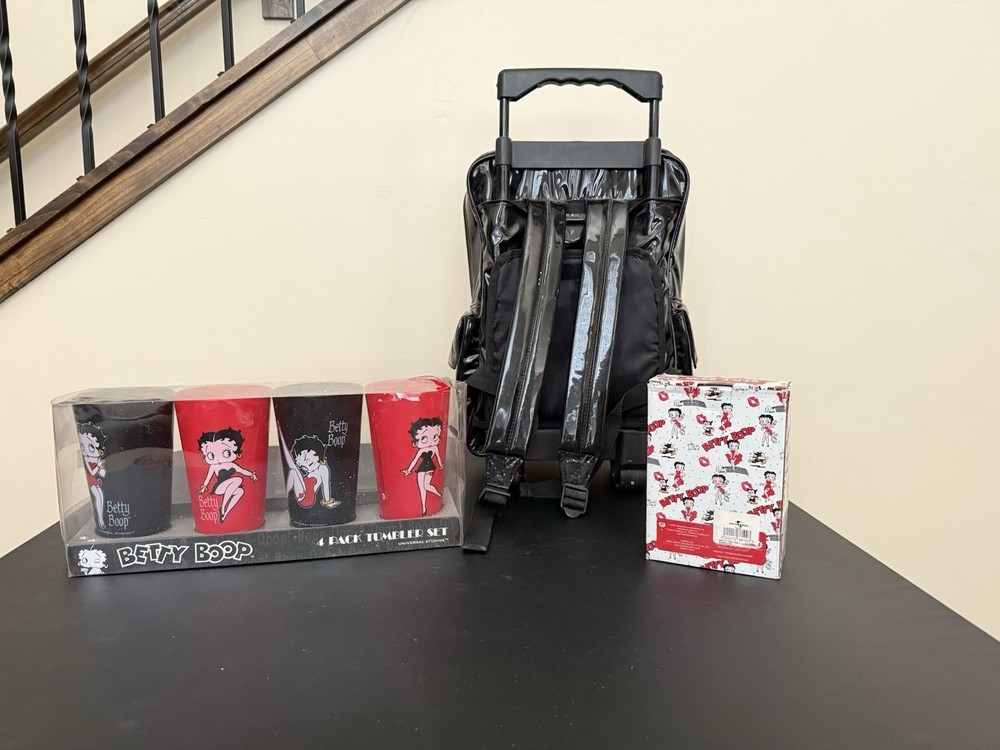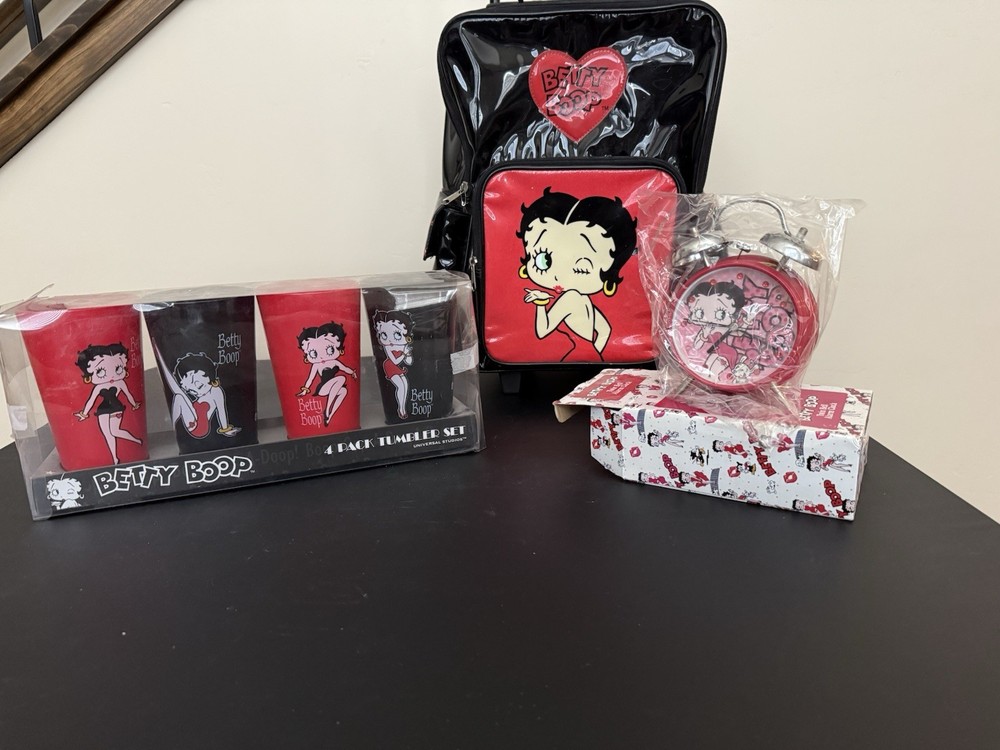 For the Betty Boop collector, Backpack, Alarm clock and Cups. Never used been on shelf being displayed. Cup Packaging has some damage but cups are in great shape.