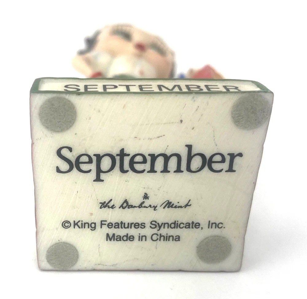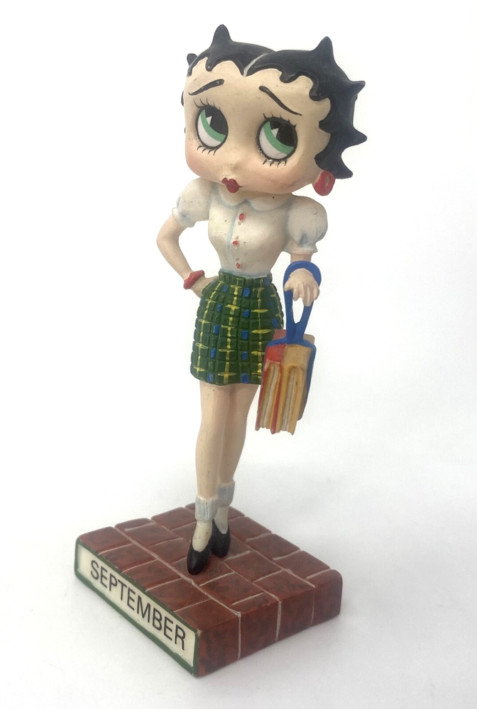 Vintage Betty Boop / The Danbury Mint / September Calendar Figurine / School The Betty Boop "Boopin’ Through The Year" perpetual calendar set by Danbury Mint featuring 12 figurines was originally produced in the 1980s , specifically manufactured during the 1980–1989 period. Danbury Mint may have continued offering the calendar, possibly using existing figurines or new molds, into the early 2000's . I have more Betty Boop's from this calendar series (please see my ebay store) (JAN, FEB, MAR, MAY, JUN, JUL, AUG, SEP, OCT, NOV, DEC) This is a used Danbury Mint Betty Boop Booping through the years January edition. There will be superficial scratches, marks, scuffs, or other signs of use. Please adjust your expectations accordingly. Please refer to photos or request specific ones for condition. Can provide more photos upon request. No box / loose figure 3.5" Tall (approximately) Excellent Pre-Owned and Pre-loved condition!.....see photos Thank you so much for supporting my small business! All Items listed are in my possession: Chicago, IL, United States of America Please see all photos as they are considered a complete part of the description and condition of the item listed. Please feel free to ask questions prior to purchasing I promise Speedy fast shipping I welcome any questions that you may have. Wishing you good health. Thanks You may like other items here in my eBay store Feedback Please leave me feedback for your order, as I will for you! I greatly appreciate positive feedback It helps to grow my business. Go Green! Buy Used! What could be more environmentally friendly than purchasing well cared for pre-owned shoes, clothes or other items instead of new? Buy used, save money, give perfectly usable items a new life and keep them out of the landfills!