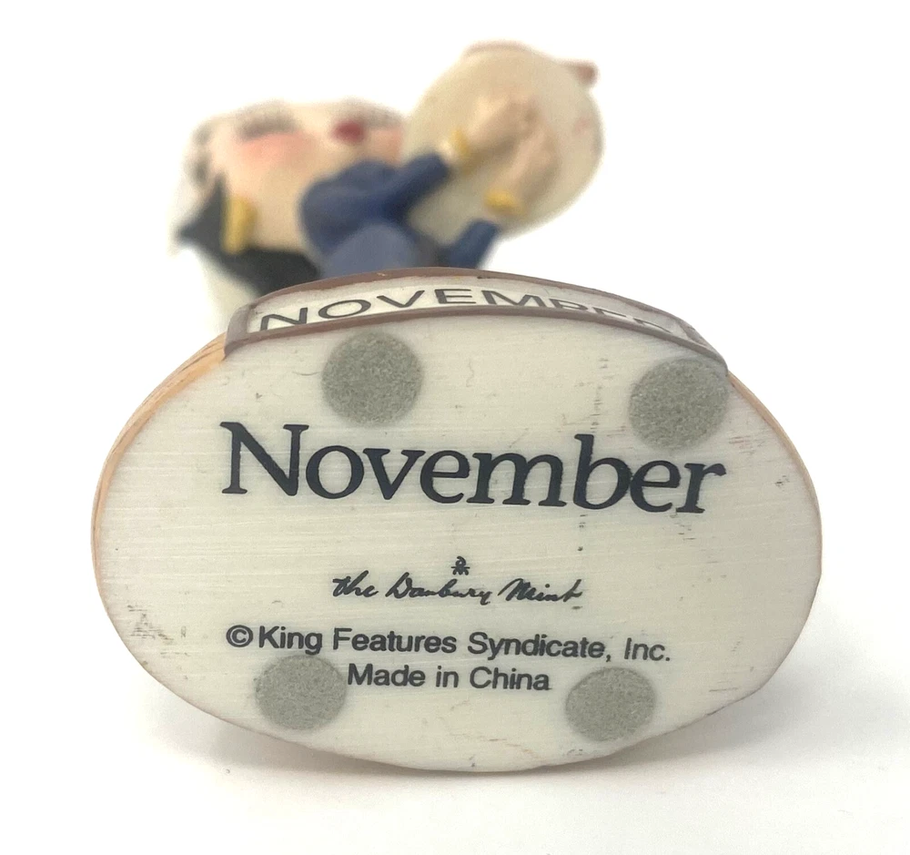 Vintage Betty Boop / The Danbury Mint / November Calendar Figurine Thanksgiving The Betty Boop "Boopin’ Through The Year" perpetual calendar set by Danbury Mint featuring 12 figurines was originally produced in the 1980s , specifically manufactured during the 1980–1989 period. Danbury Mint may have continued offering the calendar, possibly using existing figurines or new molds, into the early 2000's . I have more Betty Boop's from this calendar series (please see my ebay store) (JAN, FEB, MAR, MAY, JUN, JUL, AUG, SEP, OCT, NOV, DEC) This is a used Danbury Mint Betty Boop Booping through the years January edition. There will be superficial scratches, marks, scuffs, or other signs of use. Please adjust your expectations accordingly. Please refer to photos or request specific ones for condition. Can provide more photos upon request. No box / loose figure 3.5" Tall (approximately) Excellent Pre-Owned and Pre-loved condition!.....see photos Thank you so much for supporting my small business! All Items listed are in my possession: Chicago, IL, United States of America Please see all photos as they are considered a complete part of the description and condition of the item listed. Please feel free to ask questions prior to purchasing I promise Speedy fast shipping I welcome any questions that you may have. Wishing you good health. Thanks You may like other items here in my eBay store Feedback Please leave me feedback for your order, as I will for you! I greatly appreciate positive feedback It helps to grow my business. Go Green! Buy Used! What could be more environmentally friendly than purchasing well cared for pre-owned shoes, clothes or other items instead of new? Buy used, save money, give perfectly usable items a new life and keep them out of the landfills!