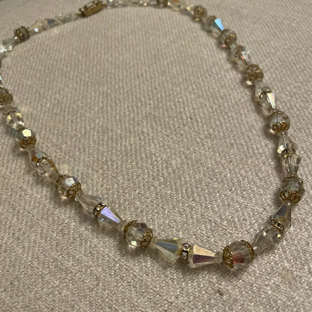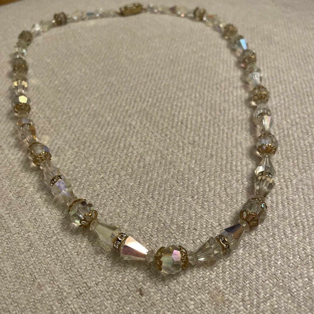Vintage Beveled Faceted Clear Aurora Borealis Crystal Beaded Necklace Estate. Condition is Pre-owned. Shipped with USPS Ground Advantage.