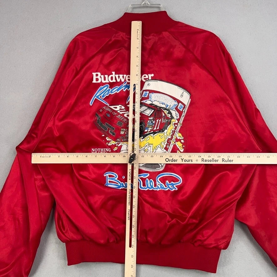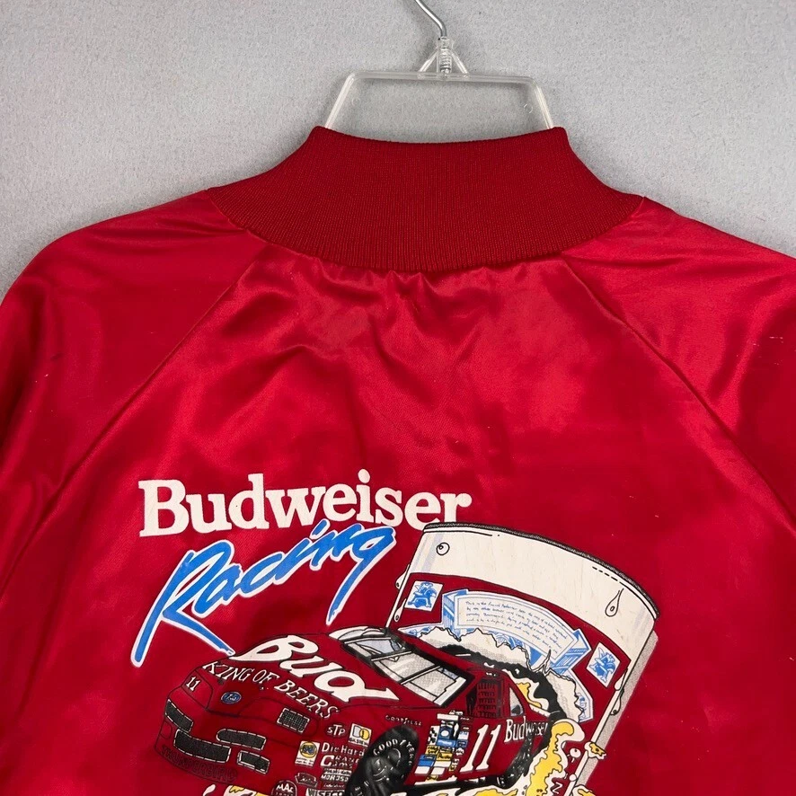 Vintage Bill Elliott Jacket Mens XL Red Satin Bomber Budweiser Racing NASCAR Condition: - Spots on back. - Some wear and scratches to the satin. - Good used condition. - No rips or holes. - Made in USA. - Nice double sided graphics. Size: - Mens XL. Measurements: - Previous washings may change the sizing written on the tag. - Please refer to the photos above for all measurements. - Please compare our measurements to that of one of your favorite garments. - Please note, item measurements are approximate . All items are bagged and sealed after being photographed, then stored in a smoke free environment to ensure the item is exactly the same as when photographed. I carefully package and ship daily. Feel free to contact me with any questions. All items have been washed per eBay standards & policies.