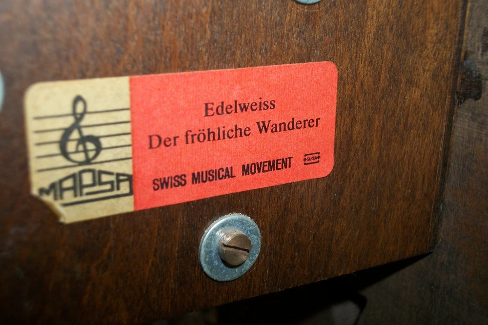 Time Period Manufactured:1970-1979UPC:Does not applyColor:BrownType:Cuckoo ClockCountry/Region of Manufacture:GermanyVintage:YesAntique:NoBrand:Cuendet Swiss Musical Movementgtin13:Does not applyTheme:MusicChime Sequence:musicalSeller Notes:“Has a little chip on the roof, where it cannot be seen. Works very well with mellow tone music.”Era:Late 20th Century (1970-1999)Display Type:AnalogMovement:MechanicalFinish:woodStyle:Black ForestPower Source:weightsFrame Material:WoodModel:EdelweissNumber Type:Roman NumeralsOriginal/Reproduction:OriginalFeatures:MusicalMaterial:Wood