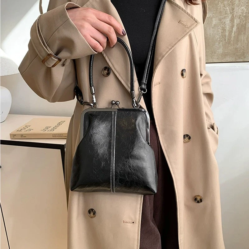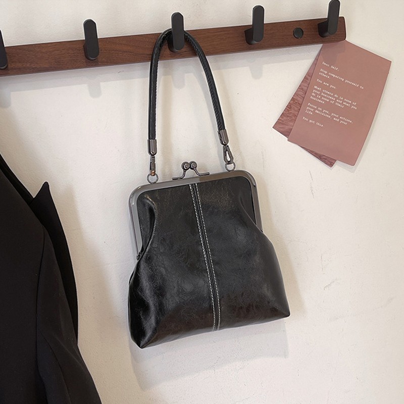 🖤 Vintage Black Kiss Lock Frame Bag – Retro Shoulder & Crossbody Clutch Add timeless elegance to your collection with this vintage-inspired kiss lock frame handbag. Designed with a classic metal frame closure, this stylish bag blends retro charm with modern versatility. Perfect for everyday wear, evening events, parties, weddings, or special occasions. ✨ Key Features : Classic kiss lock metal frame closure for secure fastening Elegant vintage retro design Can be used as shoulder bag, crossbody bag, or clutch purse Spacious interior for essentials (phone, wallet, keys, cosmetics) Lightweight and comfortable for all-day use Suitable for casual, formal, and evening outfits 📏 Approximate Size : (Please refer to measurements in listing photos for accurate sizing.) 🎯 Perfect For: Evening parties Weddings & formal events Travel & outings Daily fashion styling This black frame purse makes a beautiful gift for birthdays, anniversaries, holidays, or special occasions.